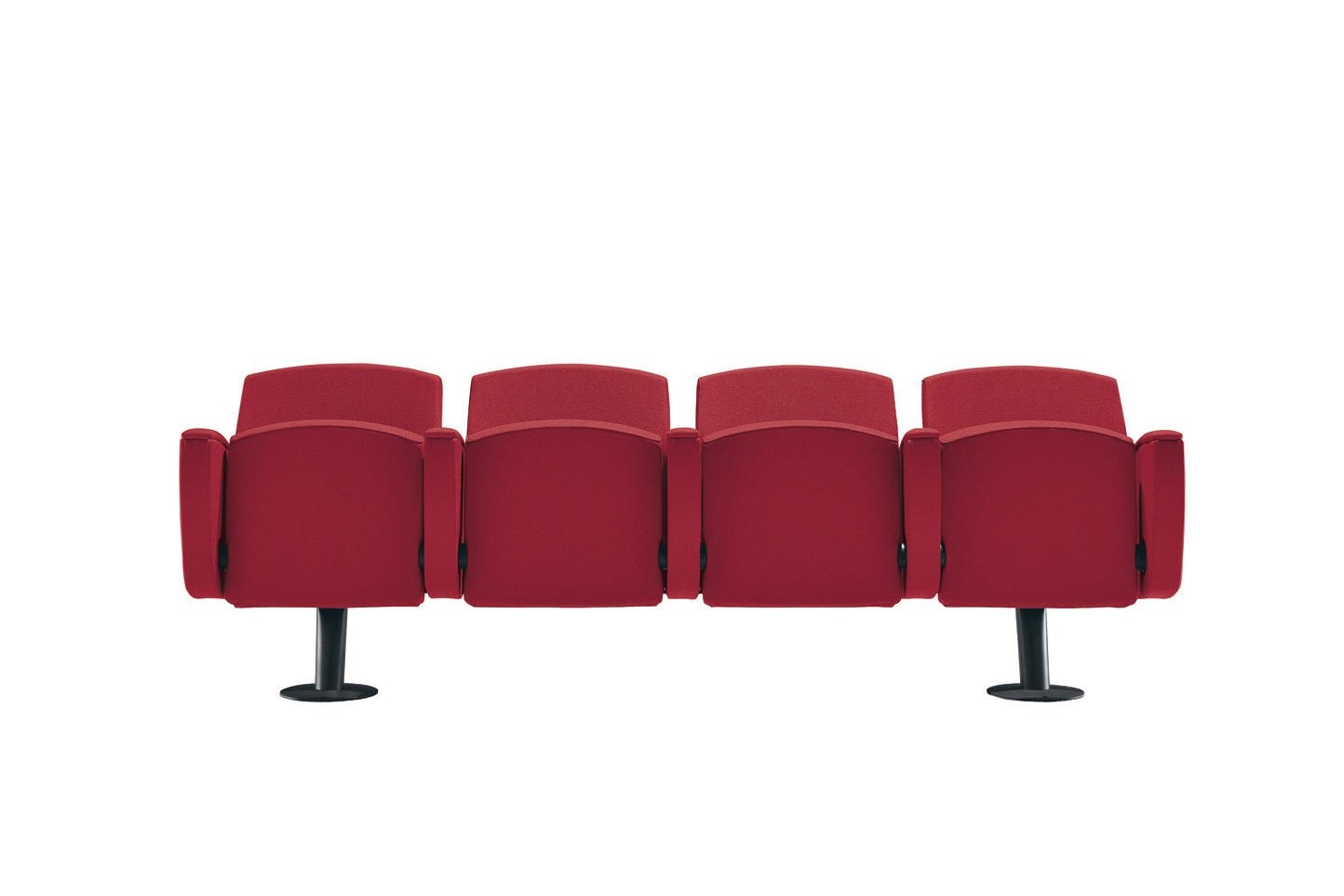 Bioscoopstoel | zaalstoel met een gewatteerde zitting. De Kadenza heeft een steunbalk waar maximaal 4 stoelen op bevestigd kunnen worden. Het frame en de steunbalk zijn gemaakt van kras vast staal uitgevoerd in het zwart. De zitting, rugleuning en armleuning zijn bekleedt met een stof uit de Kastel stoffencollectie. Optioneel kan de Kadenza stoel voorzien worden van een wegklapbaar schrijfblad.