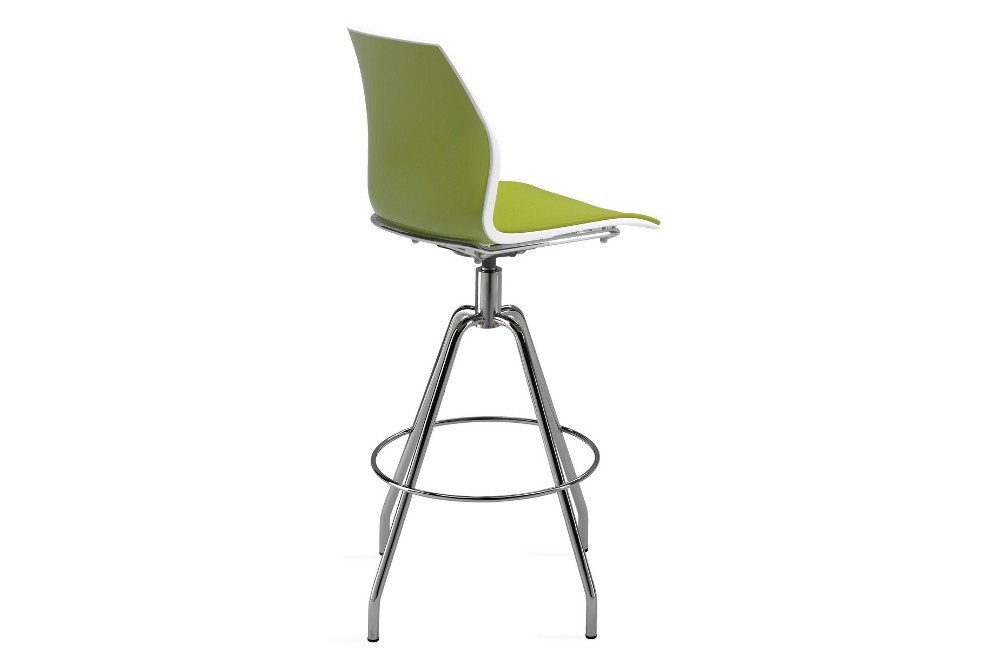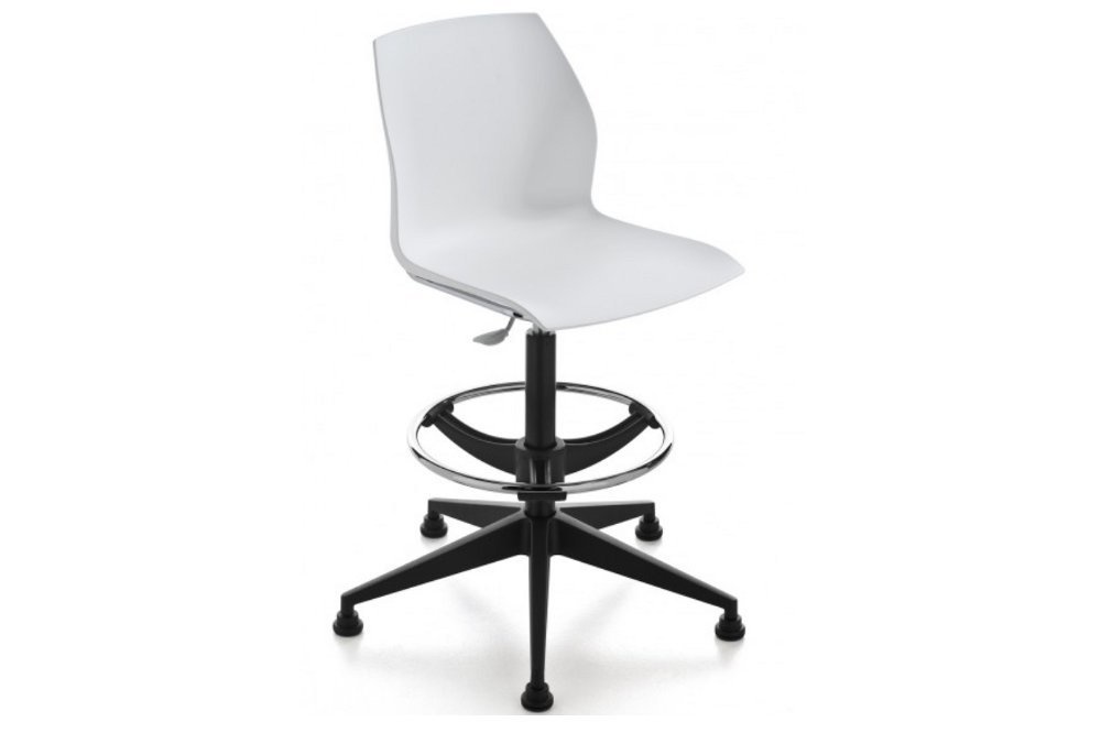 Een multifunctionele kruk met een grote variatie onderstellen en mogelijkheden om de kunststof zitschaal uit te voeren. De kruk heeft meerdere uitvoeringen, waaronder de Monocolor of Bicolor voor het persoonlijke accent in uw bedrijf of instelling. De Bicolor versie heeft een witte zitschaal waarbij de achterzijde van de rug in hoogglans contrasterende kleur is uitgevoerd, de Monocolor is geheel in één kleur. Naast wit is er de keuze uit: zwart, beige, groen, donkergrijs, oranje, donkerblauw en rood. Tevens is er de mogelijkheid om te kiezen voor een gestoffeerde variant met een opdekstoffering op de zitting of de kuip geheel rondom in een of twee kleuren. Materialen