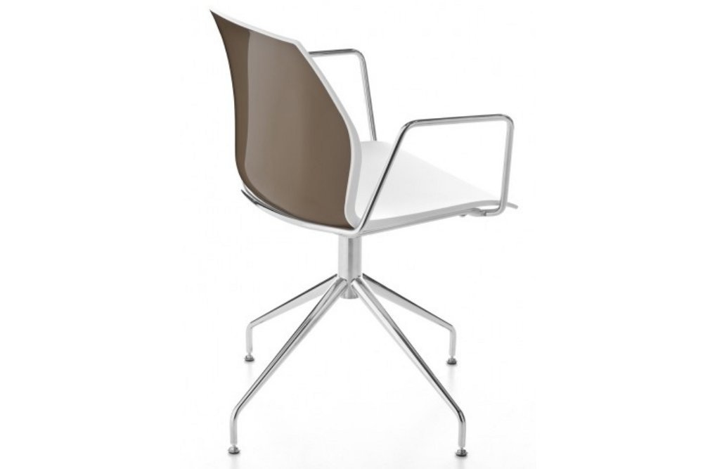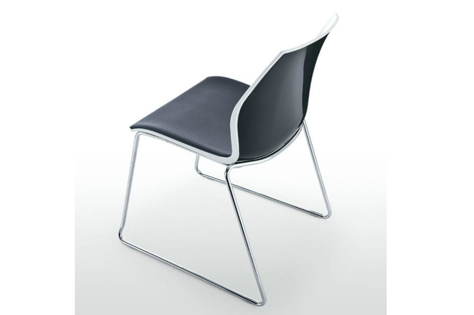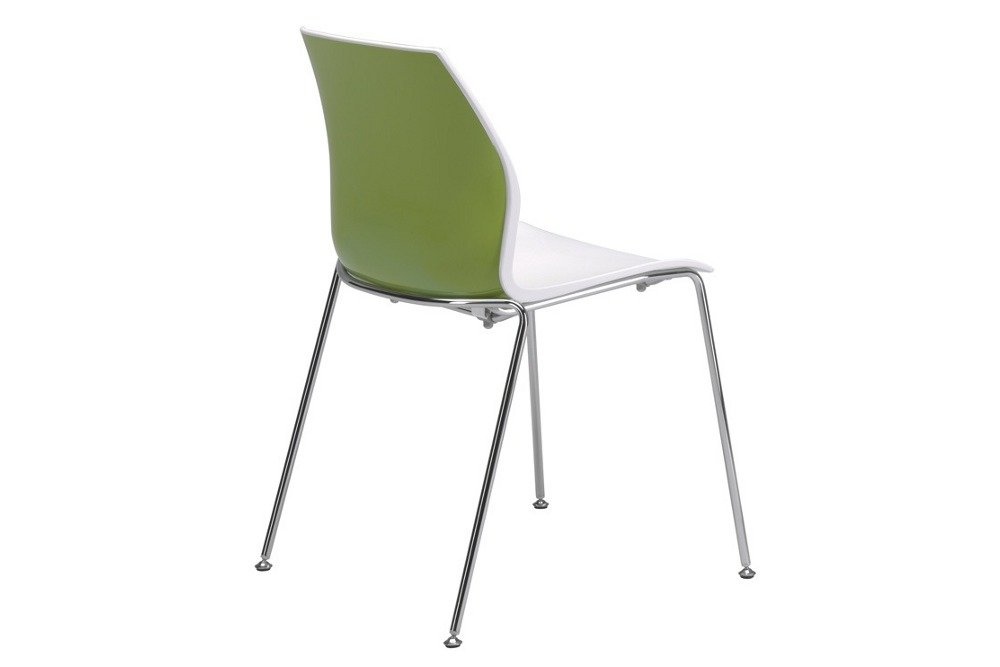 De stoel heeft meerdere uitvoeringen, waaronder de Monocolor of Bicolor voor het persoonlijke accent in uw bedrijf of instelling. De Bicolor versie heeft een witte zitschaal waarbij de achterzijde van de rug in hoogglans contrasterende kleur is uitgevoerd, de Monocolor is geheel in één kleur.