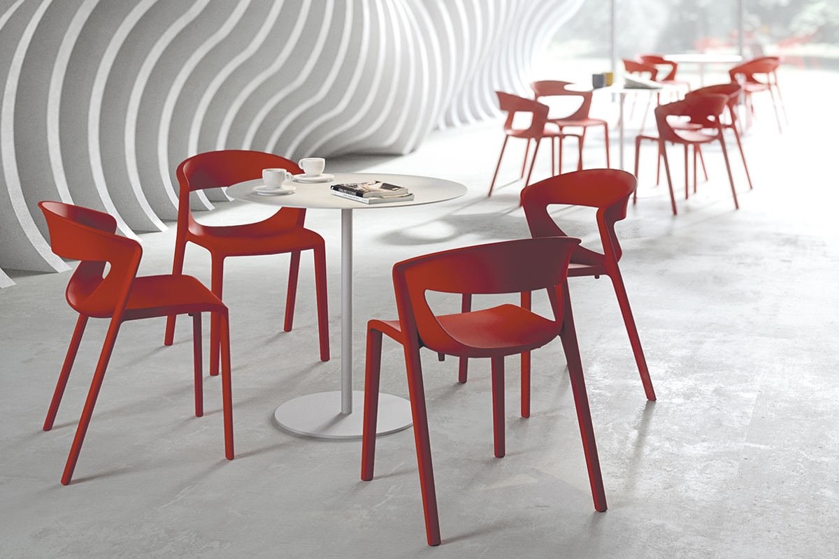 De Kicca One van Kastel is een stapelbare kantinestoel en is geschikt voor bedrijfsrestaurants en kantines voor binnen en buiten. Materialen en kleurenDe stapelbare kantine|restaurantstoel is gemaakt van polypropyleen. De Kicca One is leverbaar in de volgende zes kleuren: crème, grijs, groen, taube, rood en lava. Door de stoelen op een bij te leveren trolley te plaatsen, zijn ze eenvoudiger te verplaatsen wanneer ze opgestapeld zijn.