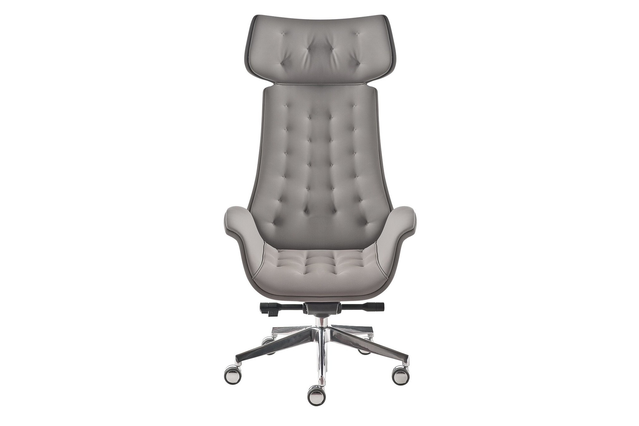 Deze luxe vergaderstoell is leverbaar met een kolomvoet of vierteens voet. De stoel is vast of draaibaar met een hoge of middelhoge rug. De bekleding is strak of gecapitonneerd. Over Kastel