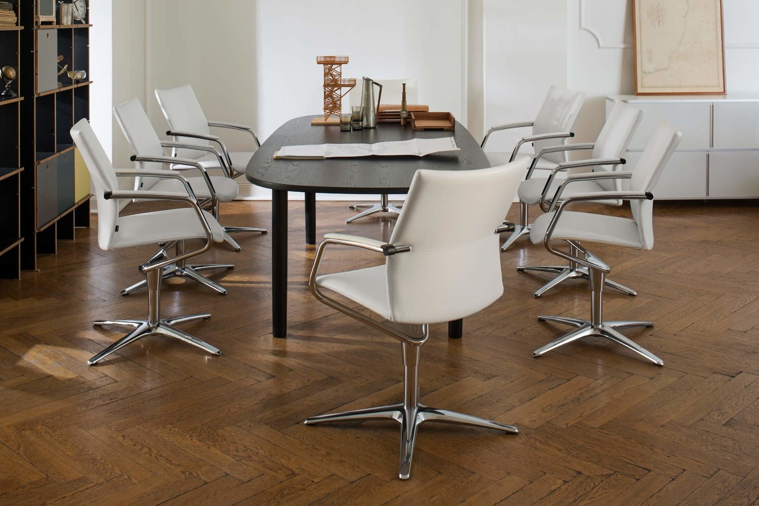 Met de draai vergaderfauteil heeft u goed oogcontact met uw partners. Na afloop wordt de oorspronkelijke tafelschikking weer snel hersteld met behulp van het terughaal mechanisme.