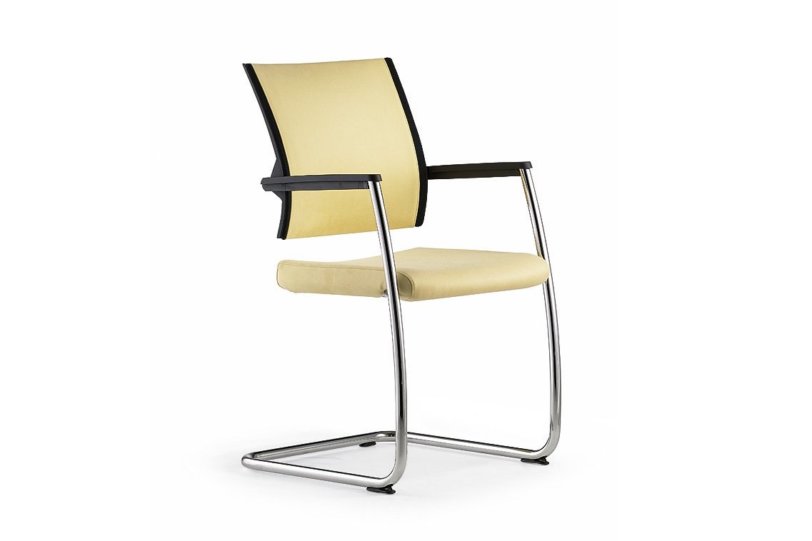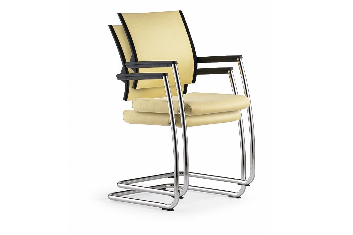 De volledig beklede Duera vergaderstoel met een verend frame, ronde buis is optioneel stapelbaar.