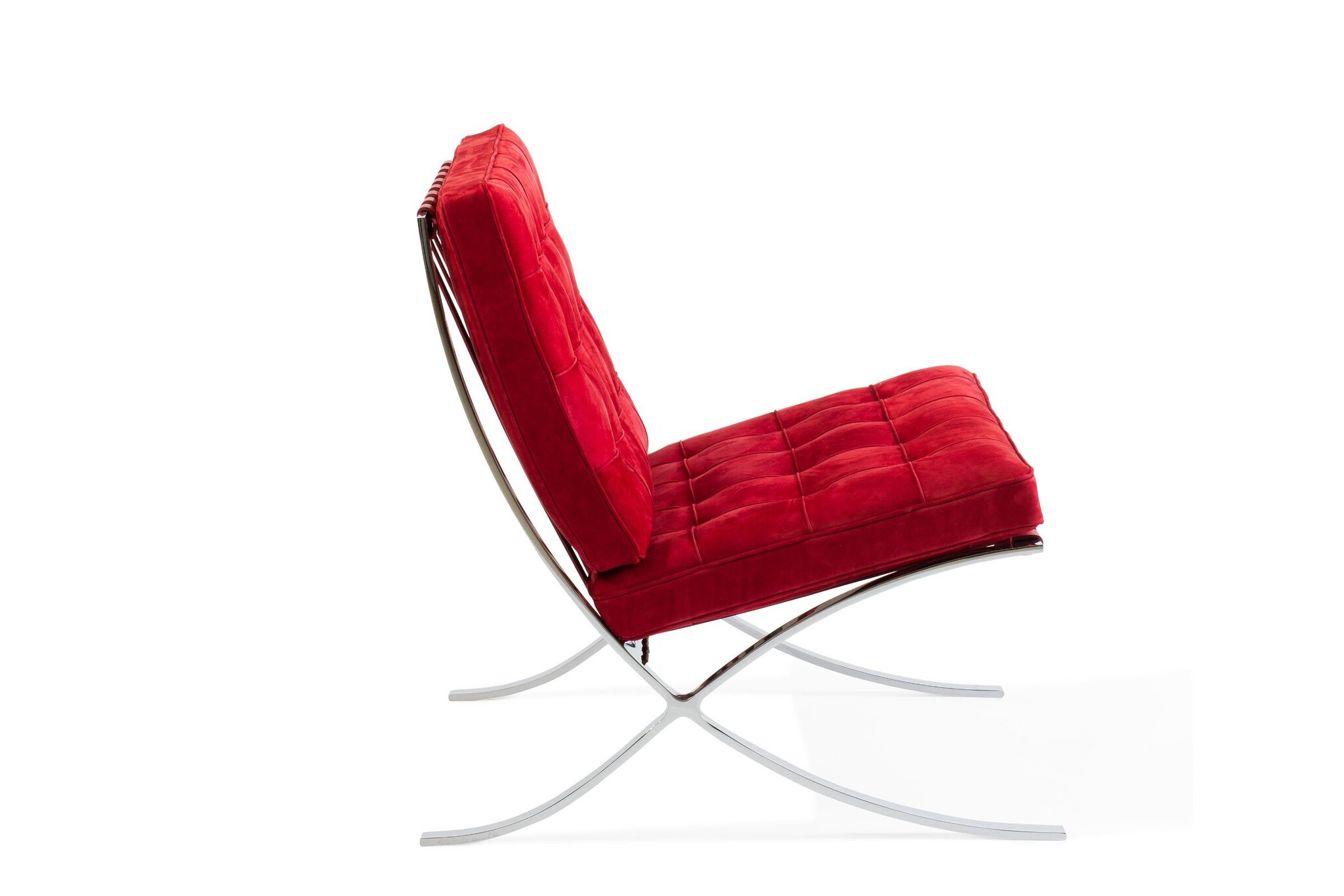 Knoll Barcelona Chair een van de meest erkende fauteuils van vorige eeuw. De zitting en rugleuning van de Knoll Barcelona Chair zijn zeer veerkrachtig, gevuld met polyurethaanschuim. De knopen zijn met de hand getuft. Het frame is van gepolijst chroom. Het frame is voorzien van het Knollstudio logo en handtekening van Ludwig Mies van der Hohe, ontwerper van het model.