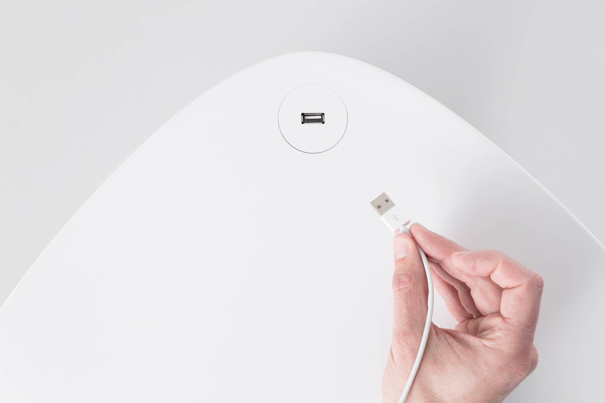 USB oplaadpunt verwerkt in de hoek van het tafelblad.