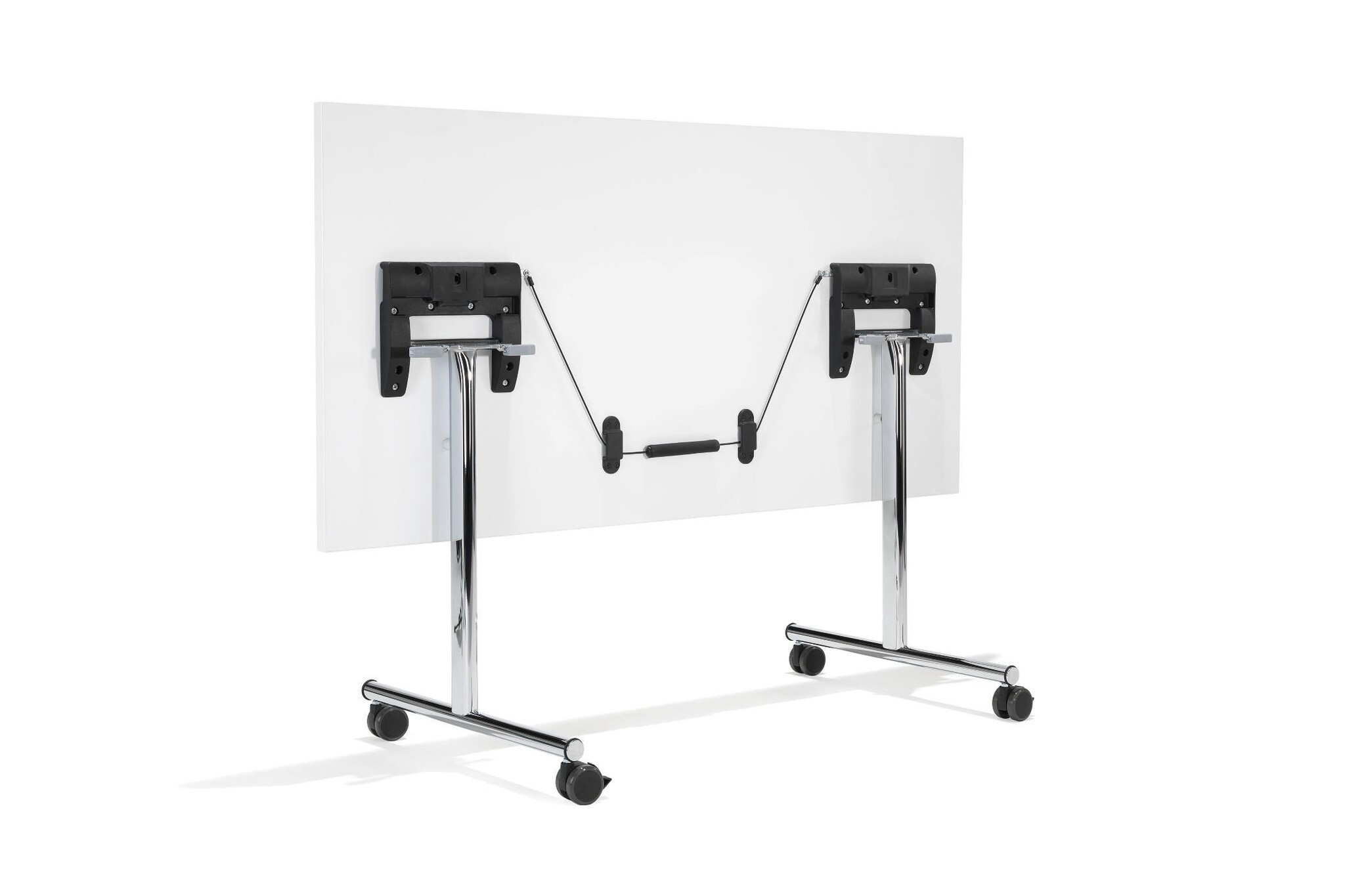 De klaptafel is stapelbaar op een transportwagen (1030 / 8).