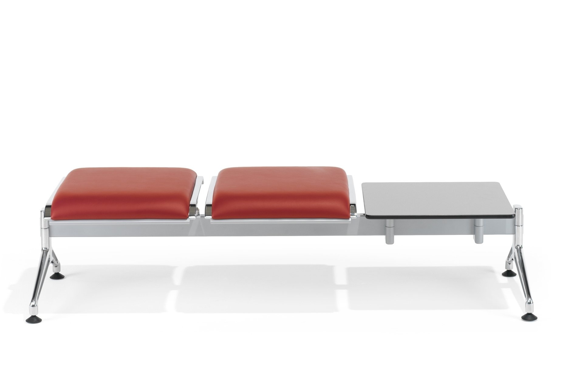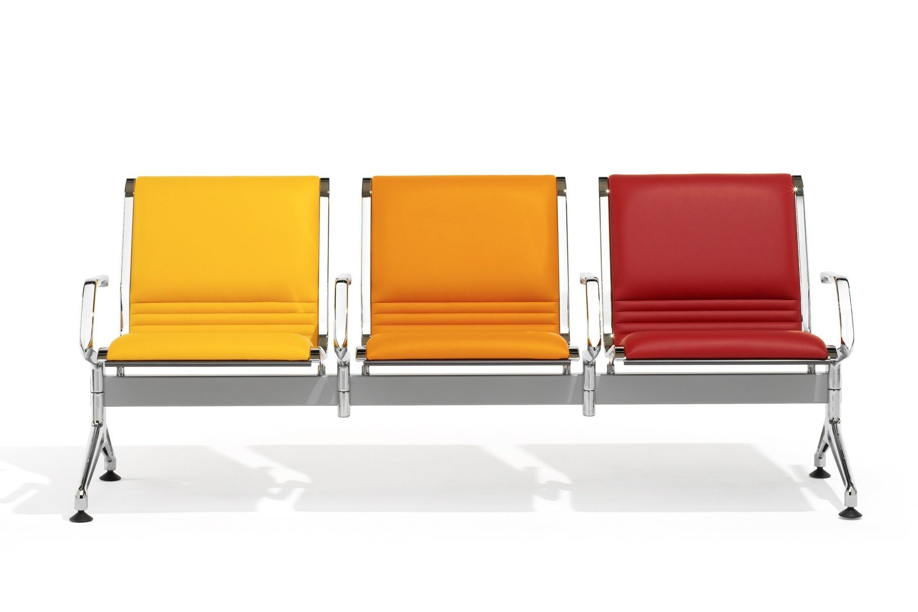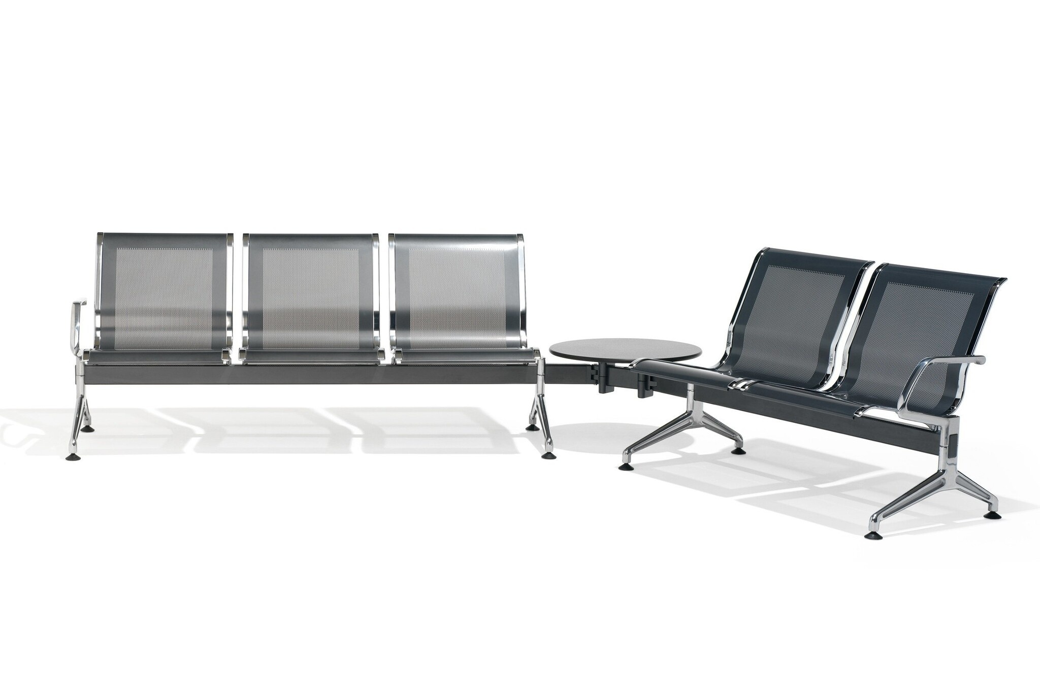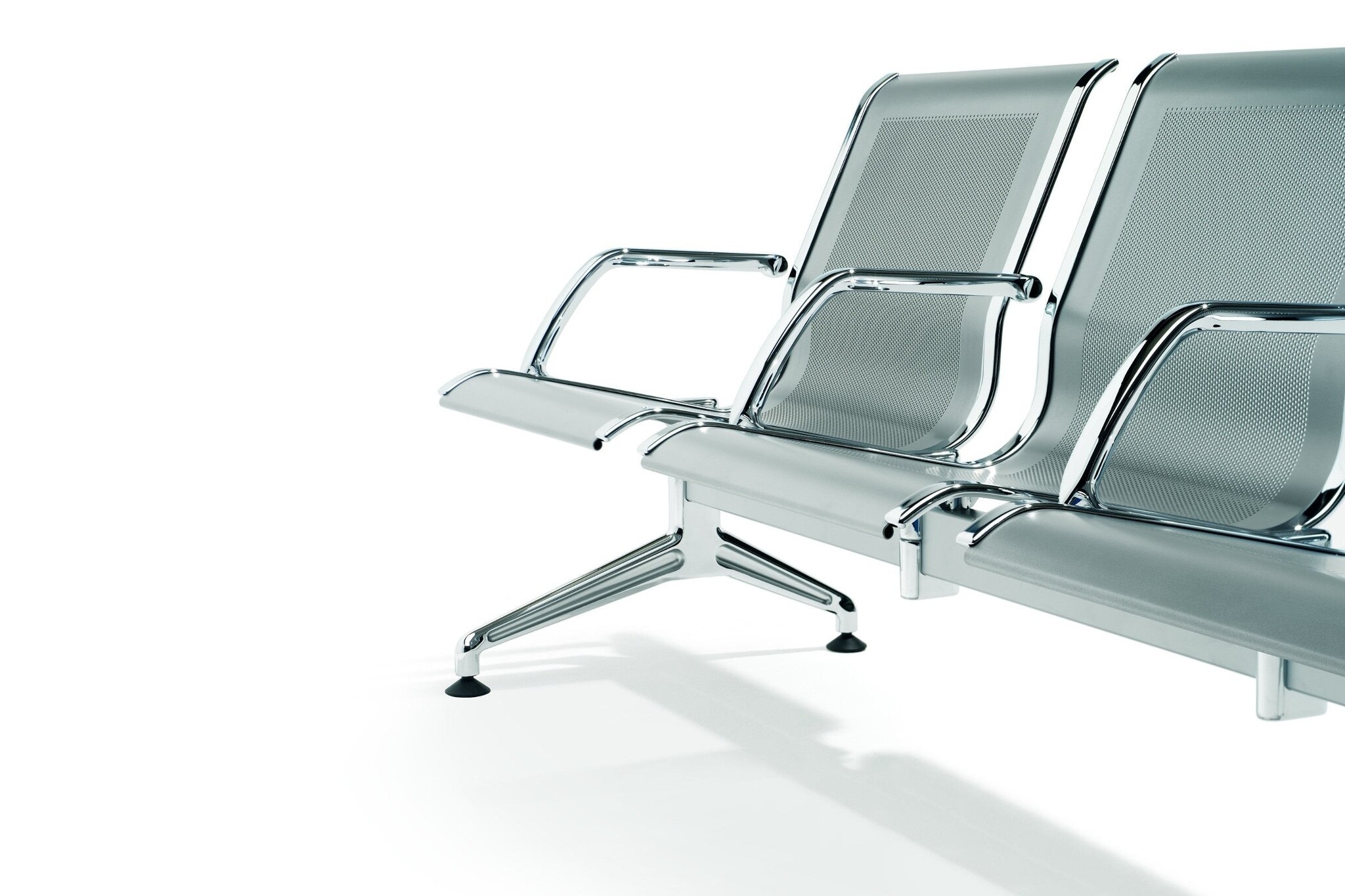 Het architectonische design van Kusch + Co Terminal 7100, de technische perfectie en de hoogwaardige materiaalkeuze zijn de troeven van deze bankserie. Ontwerp van prof. Jorgen Kastholm. De licht gebogen zitschalen van geperforeerd staal, optioneel met opdekstoffering, contrasteren met de glanzend verchroomde voetstukken, armleggers en zijstrippen. Naast zijn mooie aanblik biedt chroom het voordeel dat het krasvast is en zijn glans behoudt. De zitschaal in roestvrij staal is slechts één van de vele varatiemogelijkheden. Materialen staal