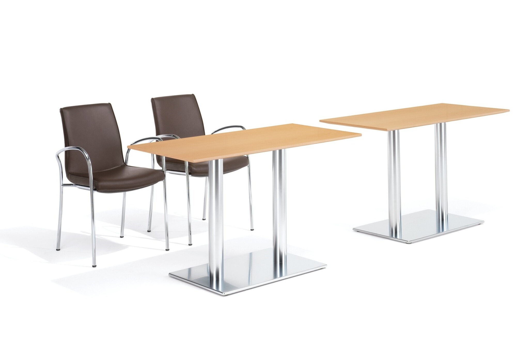 Kusch 8800 - de klassieke kolomtafel. Het slanke, elegante tafelblad wordt gedragen door een stalen frame dat stabiliteit en stevigheid biedt. Met veel beenruimte voor iedereen. Deze serie is ontworpen voor wacht- en ontvangstruimtes, voor hotels en horecagelegenheden. De stalen kolom en bodemplaat zijn gemoffeld of optioneel ook glanzend of zijdemat verchroomd leverbaar. Met in hoogte verstelbare kunststof- of viltglijders. De centrale kolom kunt u met een vierkante of ronde bodemplaat combineren.