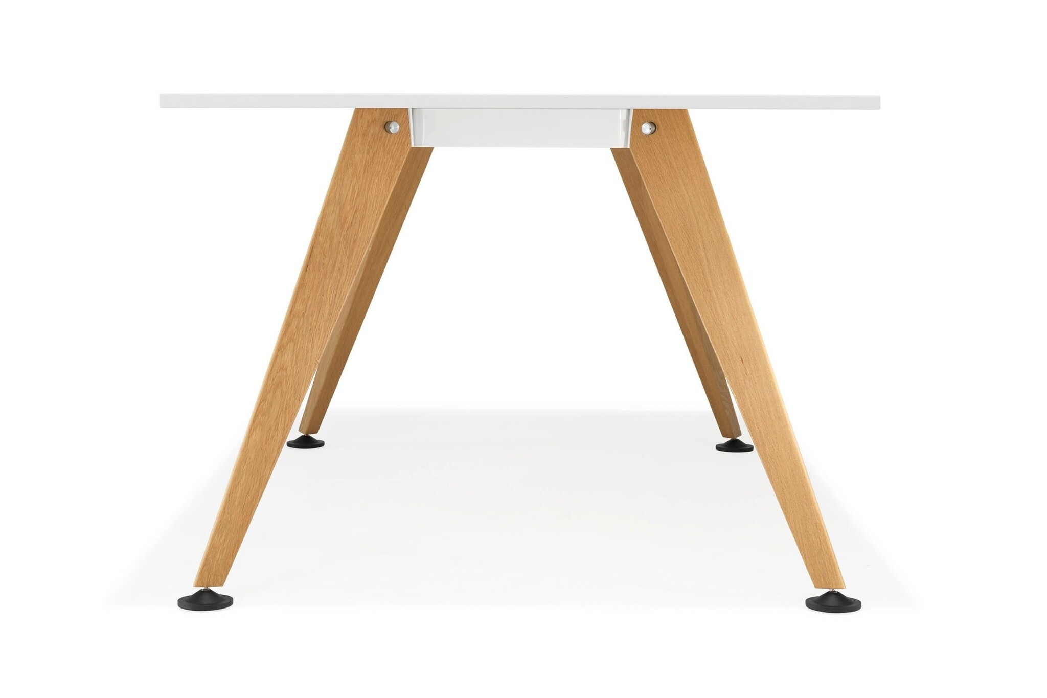 De poten van de tafel lopen schuin naar beneden in de vorm van een driehoek. Dit valt direct op, want dit maakt de tafel anders dan anders. Ook bij de poten heeft u overigens de keuze uit hout of metaal.