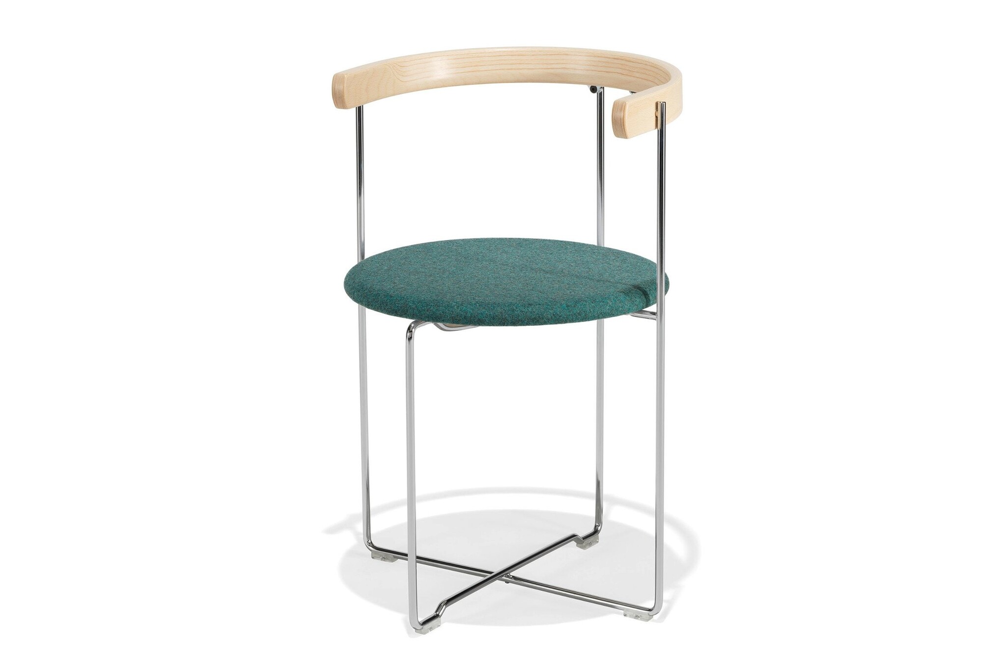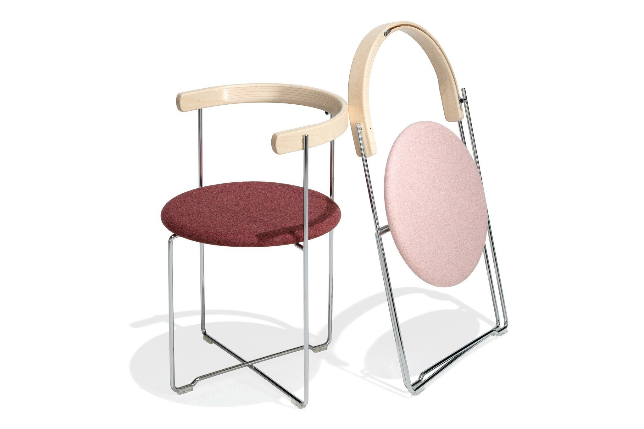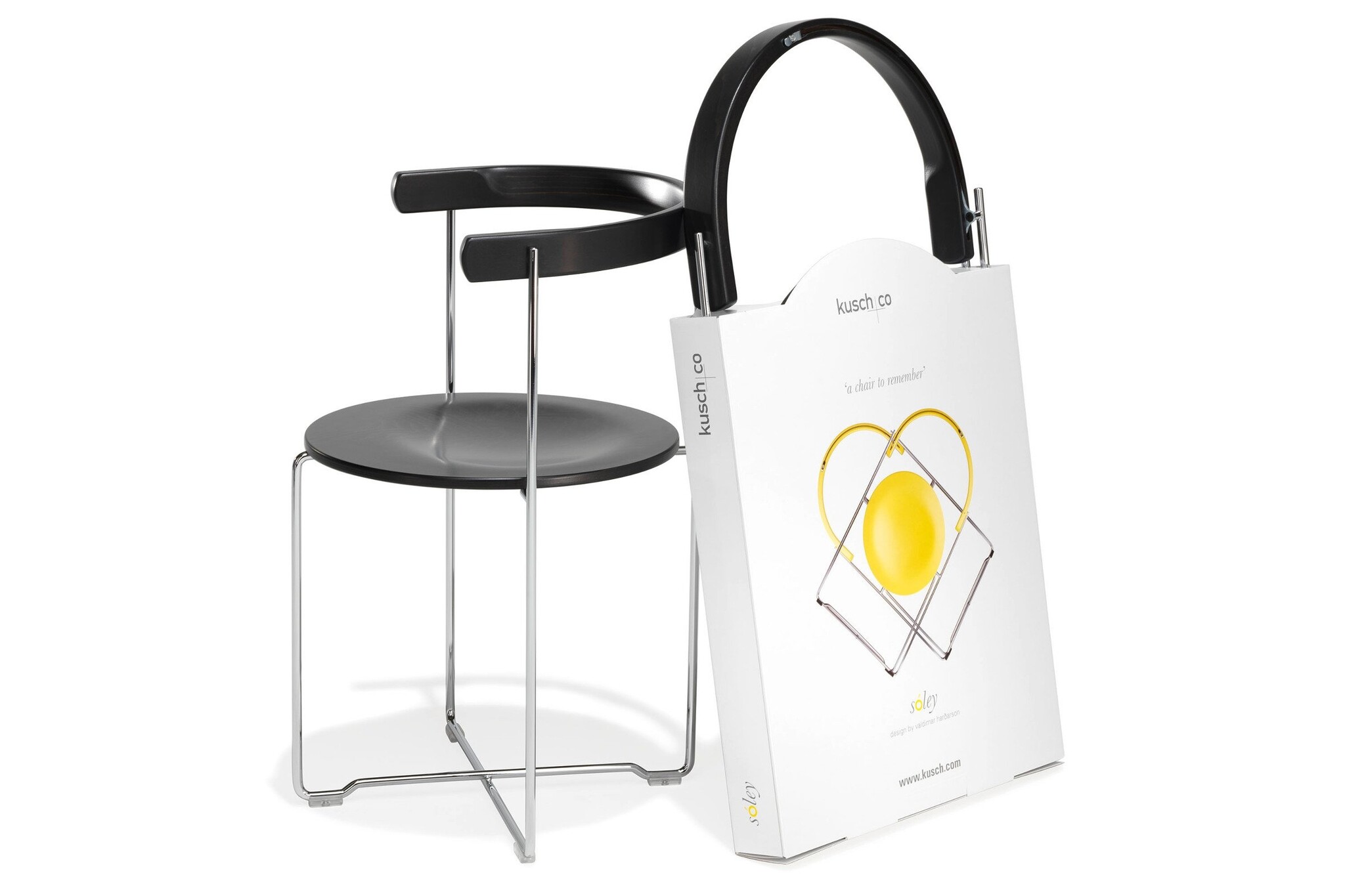 Kusch Soley stoel in een nieuw jasje. Oorspronkelijk ontworpen in 1983 door Valdimar Hardarson uit IJsland. Het ontwerp heeft twee formele elementen: cirkels en rechte lijnen. De stoel wordt omschreven als een eye candy en dit hebben we nog nooit eerder gehoord van een stoel. De Soley is te gebruiken als restaurantmeubilair of voor het vullen van zalen.