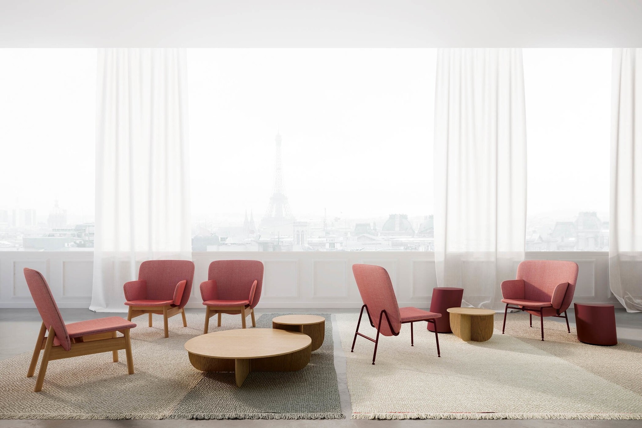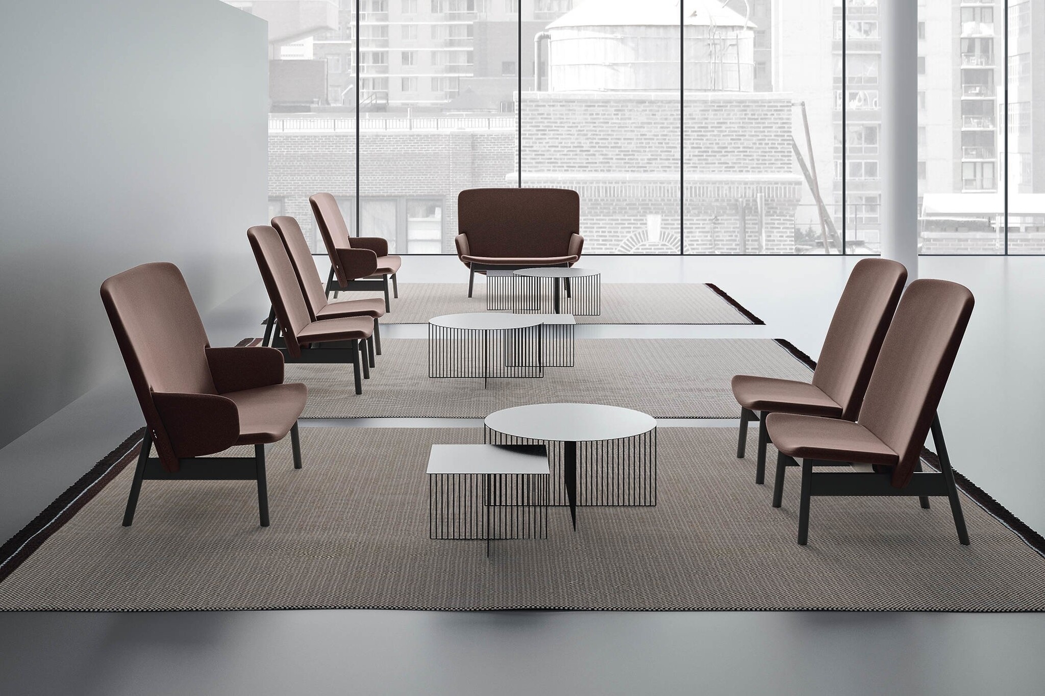 Gratie en lichtheid zijn de kenmerkende eigenschappen van deze fauteuils met een aangename vintage gevoel. De fauteuil is verkrijgbaar in twee vormen: in buisvormige metaal en hout (gekleurd of natuurlijk).De brede rug, zitting en armsteunen zijn bekleed met een breed scala aan stoffen en kleuren, om de gebruiker te verwelkomen en zorgt voor een intieme sfeer in een lounge, lobby of andere openbare ruimte.