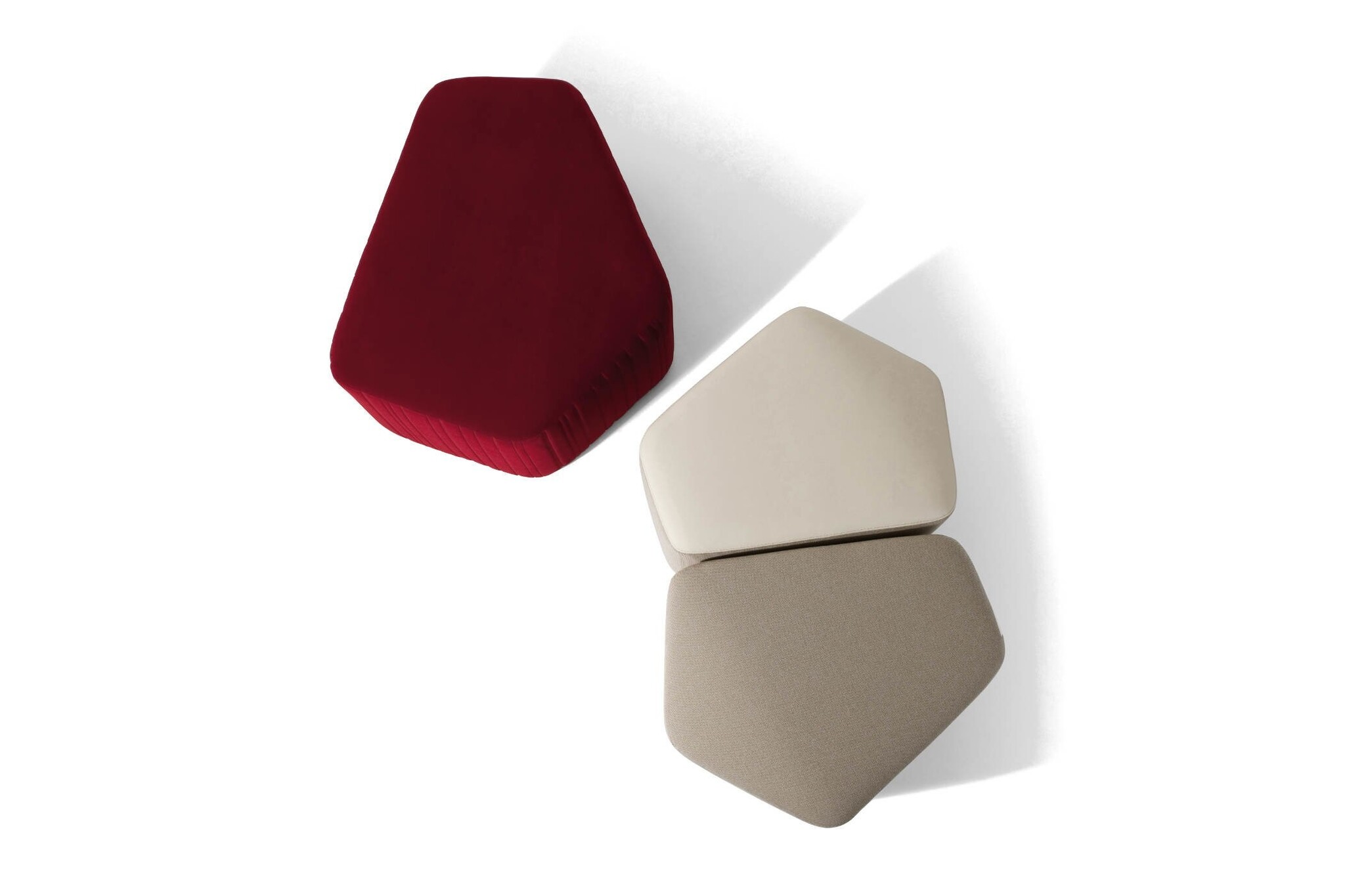Modo van laCividina zijn onregelmatig gevormde poefs die individueel samen kunnen worden gebruikt of gegroepeerd om een configuratie te vormen. De poefs hebben een houten structuur, bedekt met verschillende diktes polyurethaanschuim en polyester vezels.De laCividina Modo poefen zijn te bekleden in leer of stof.