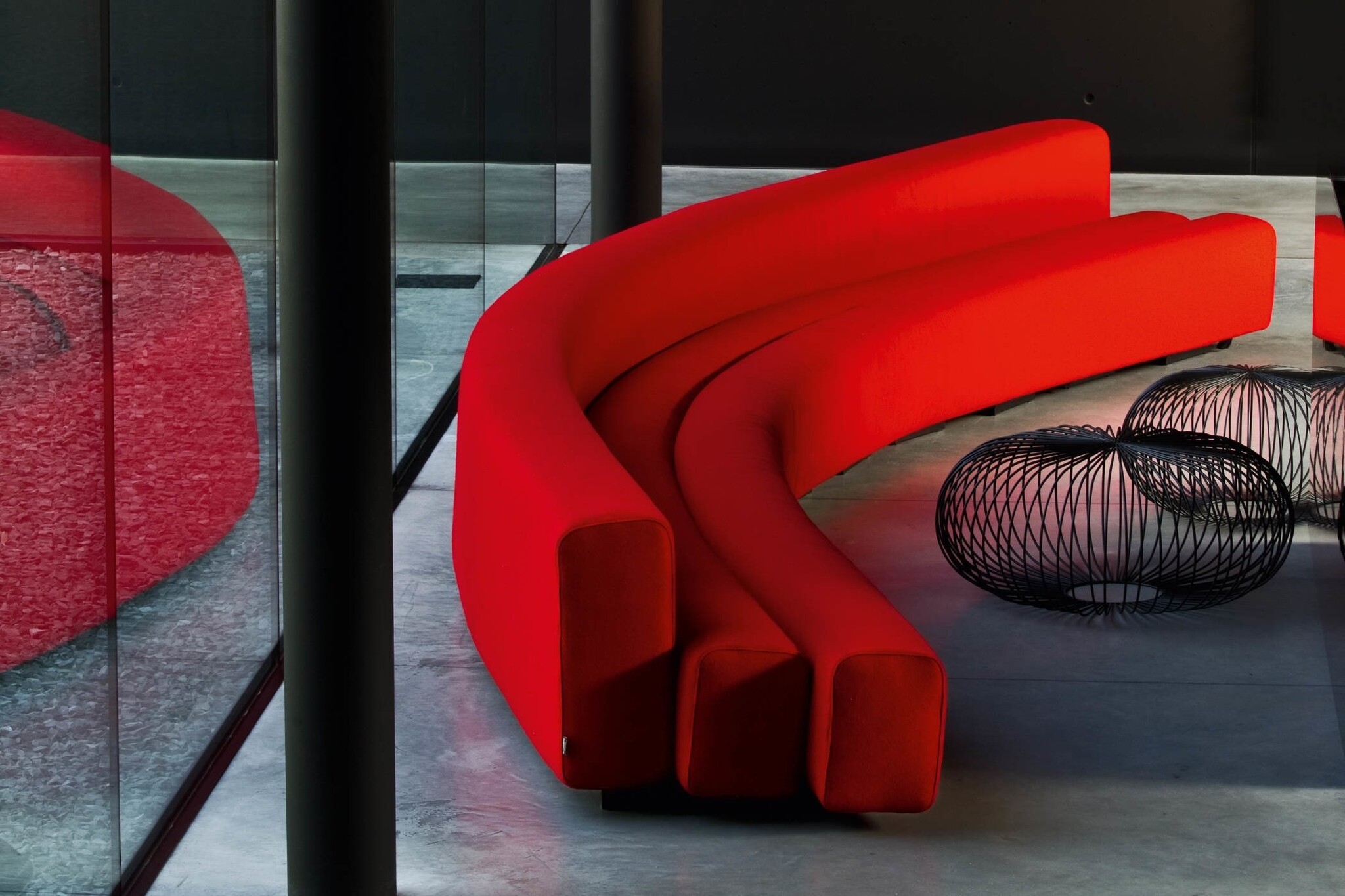De Osaka is in 1967 ontworpen en ontwikkeld in 1970 voor de Osaka Expo. De ontwerper is de bekende Franse ontwerper Pierre Paulin. Dit systeem van modulaire sofa ’s, met ronde, organische lijnen, maken oneindige oplossingen mogelijk door het combineren en het uitlijnen van de eenvoudige gebogen elementen.De stalen constructie is bedekt met vormvaste, geëxpandeerd polyurethaan bekleding, bekleed met stretchstof. Zo zijn ronde vormen ook mogelijk.