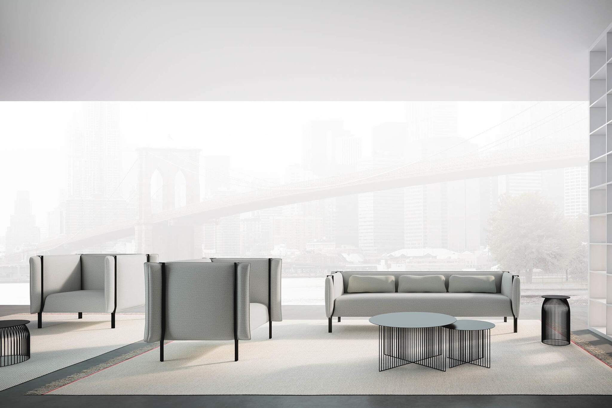 Pinch banken en fauteuils hebben slanke buisvormige metalen frames dat de eenvoudige gecapitonneerde rugleuning en armsteun bij elkaar houden. Ontworpen door Skrivo Design in 2016 De producten in hun verschillende vormen zijn aan te vullen met comfortabele kussens en praktische ronde tafels die aan beide zijden kan worden geplaatst. Ideaal voor in de wachtkamer of andere openbare plekken waar bezoekers even plaats kunnen nemen.