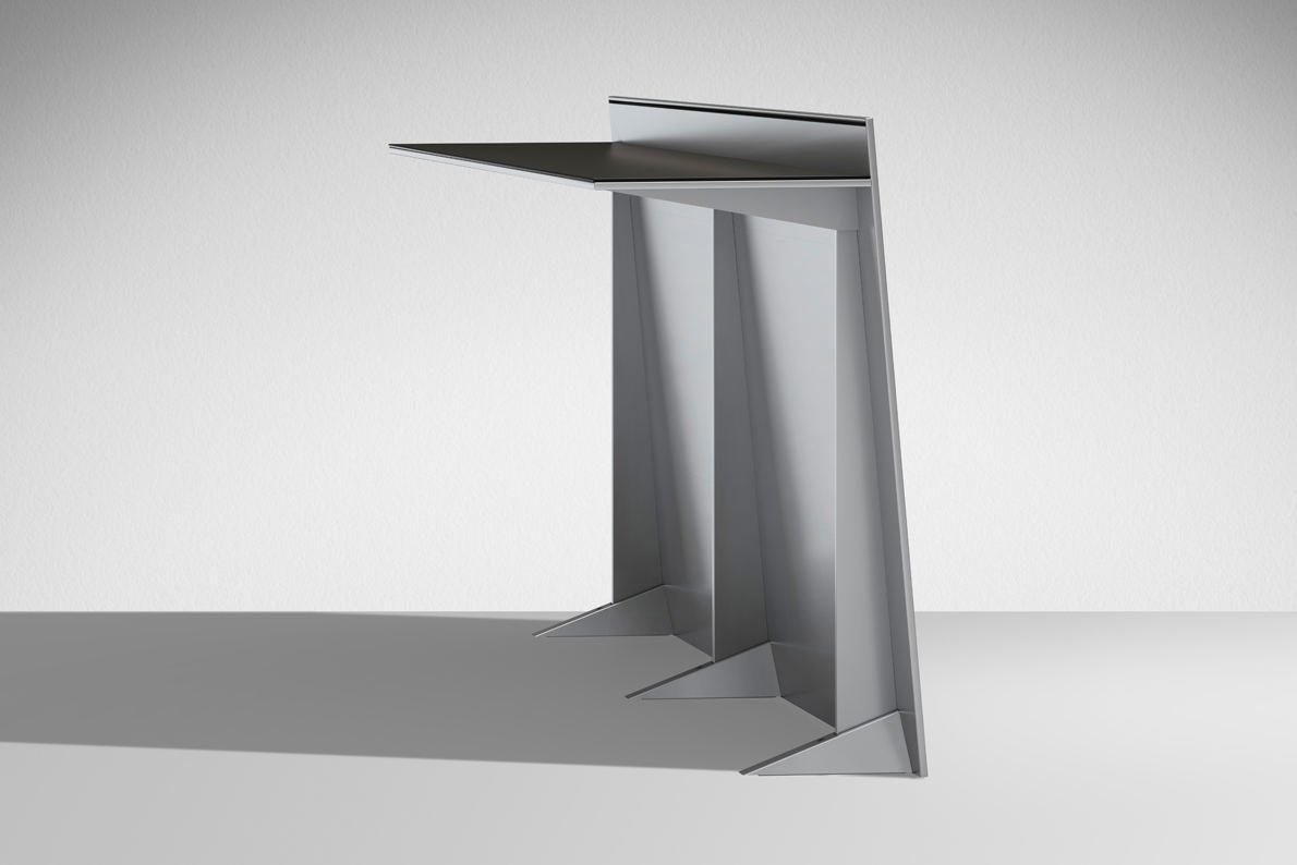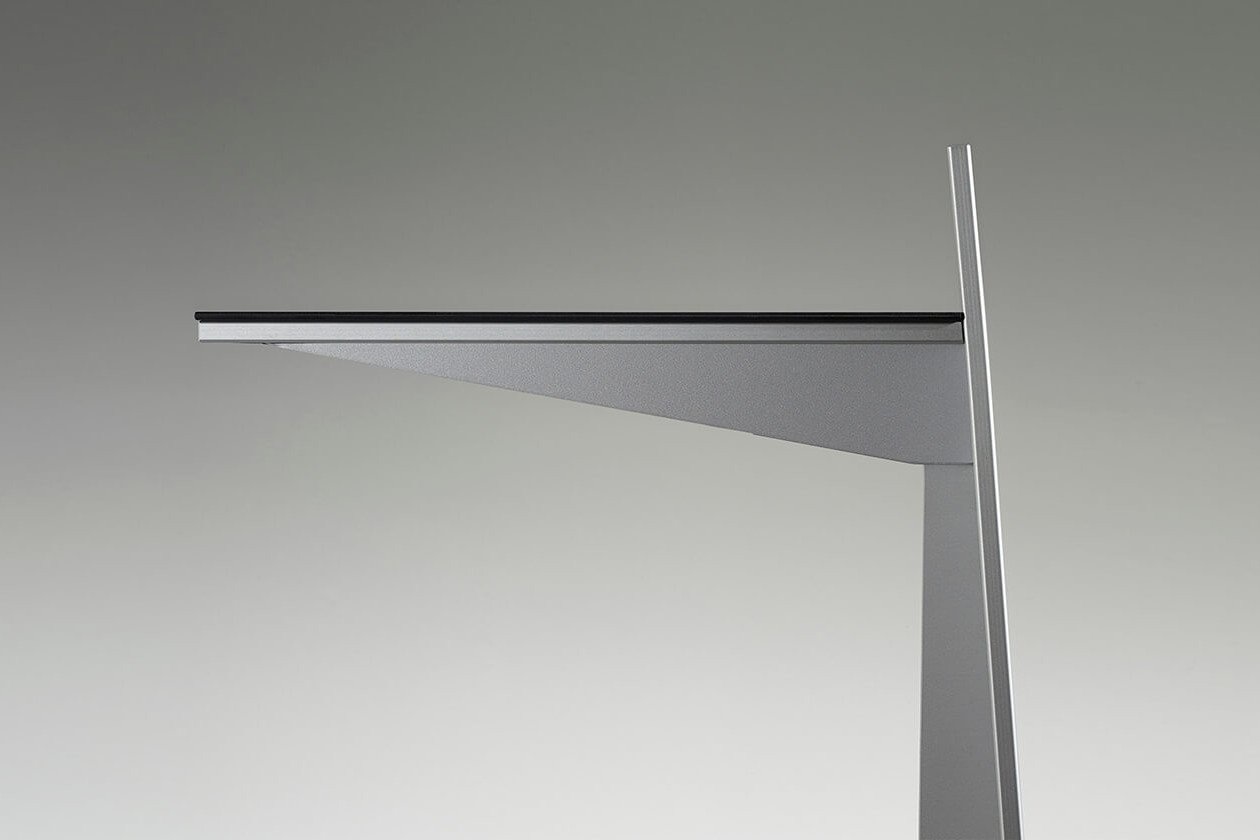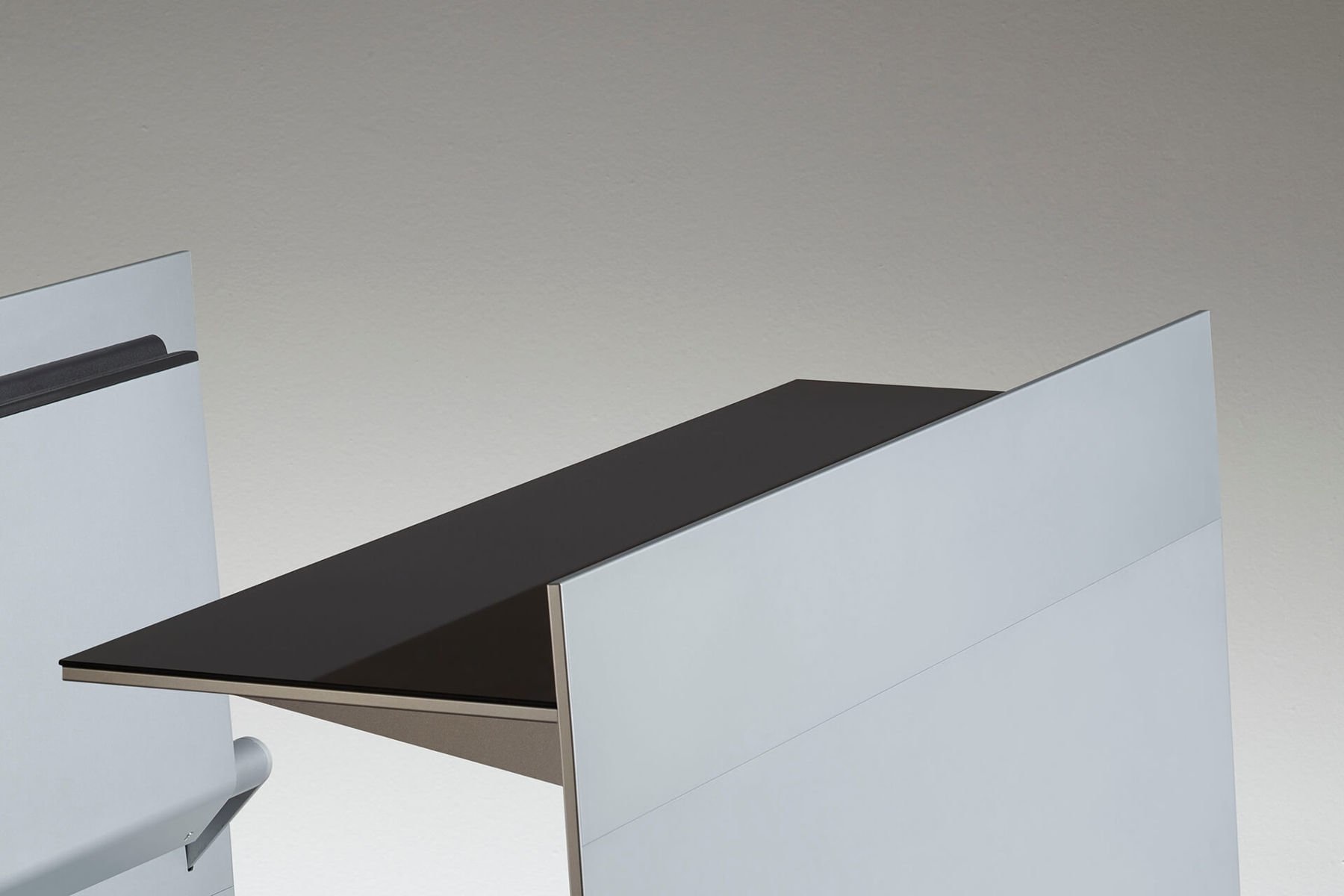 De toplaag van de tafel en stoel van het Lamm Blade system bestaat uit een krasvrije HPL-laag.