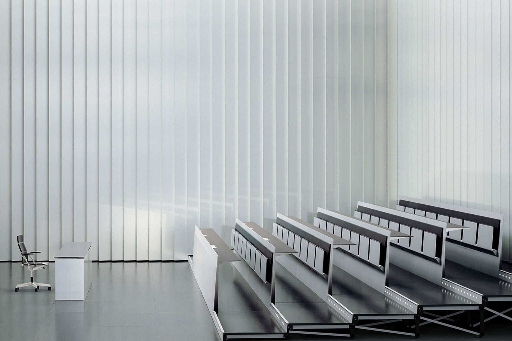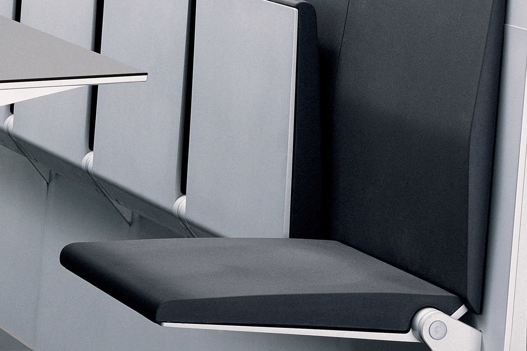 Het perfecte systeem voor onderwijsinstellingen als hogescholen en universiteiten: Lamm Blade system. Dit systeem bestaat uit zaalstoelen, waarbij tevens een tafel hoort, zodat een student aantekeningen kan maken of zijn/haar laptop hierop kan plaatsen. Aan de tafel die voor de stoelen staat, kan tevens weer een nieuwe rij stoelen toegevoegd worden, enzovoort. Op deze manier kunt u eindeloos veel rijen creëren. De stoelen klappen automatisch in wanneer u opstaat. Hierdoor blijft de ruimte overzichtelijk en netjes. Het Lamm Blade system is de perfecte reden als het gaat om ruimtes voor educatie, lezingen, presentaties en congressen. De Lamm Blade wordt daarom vaak geplaatst in collegezalen, auditoria en theaters. Lamm Blade system – de eigenschappen