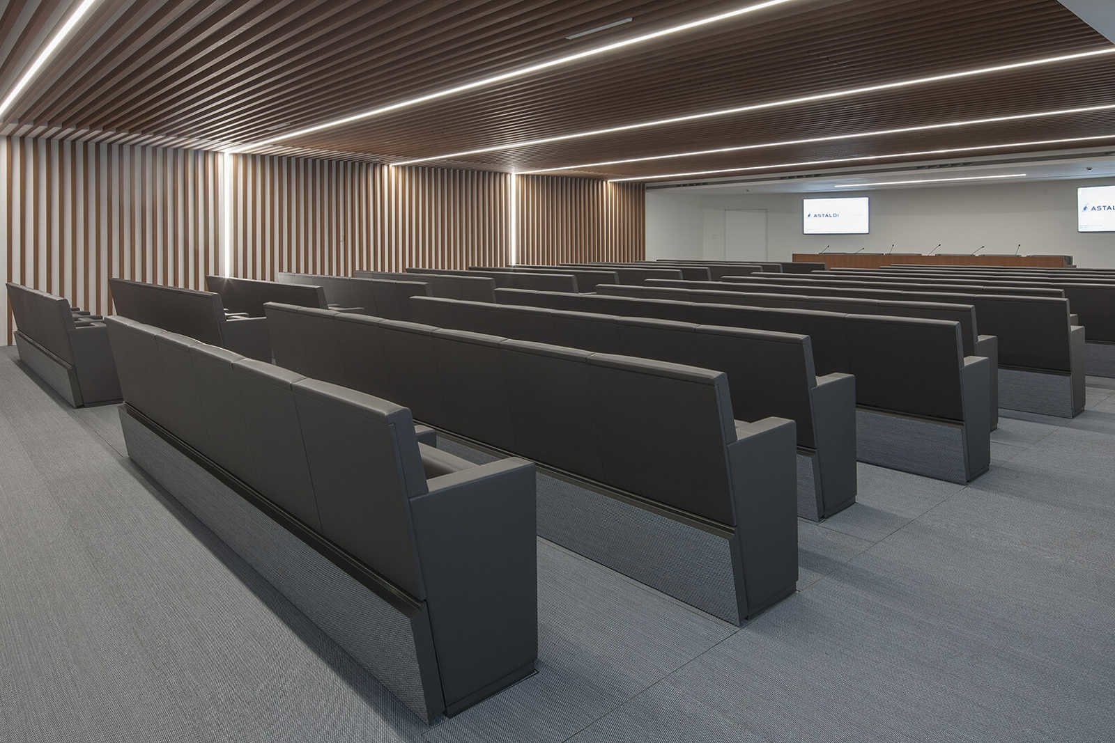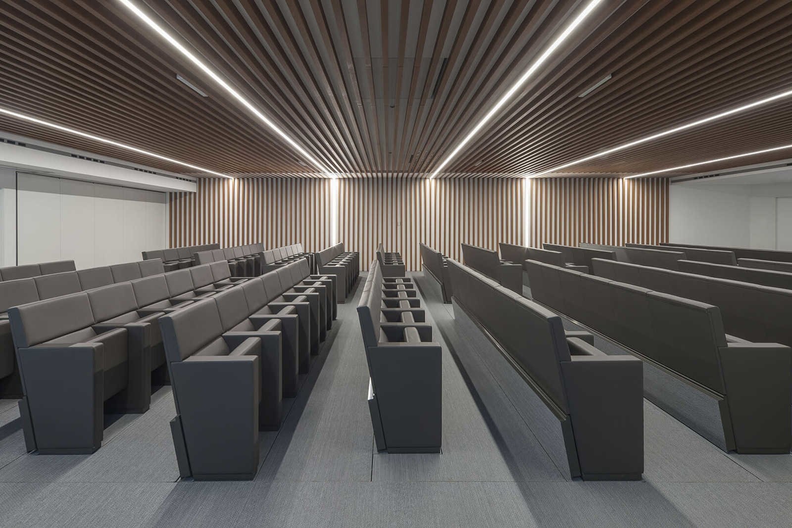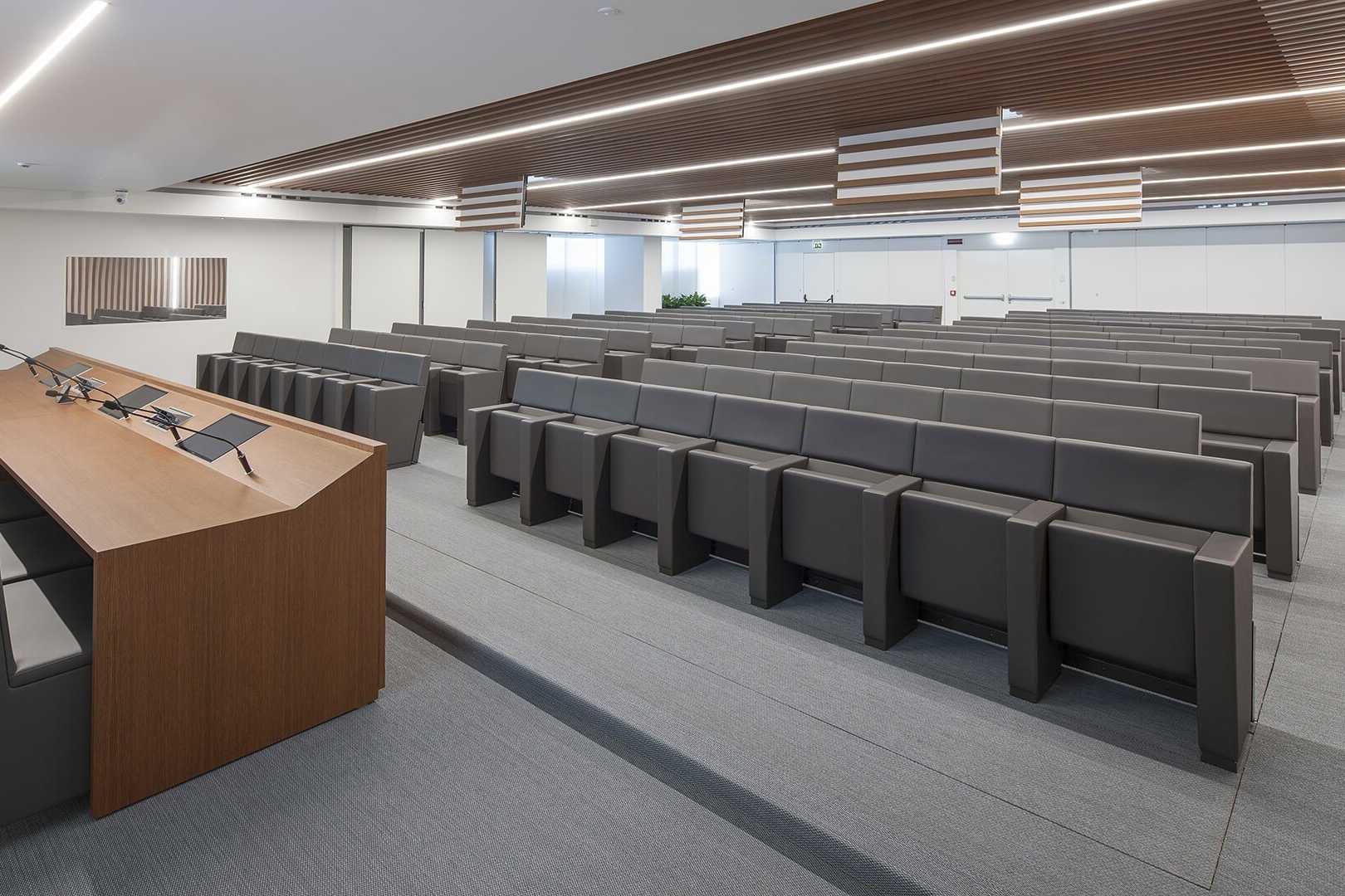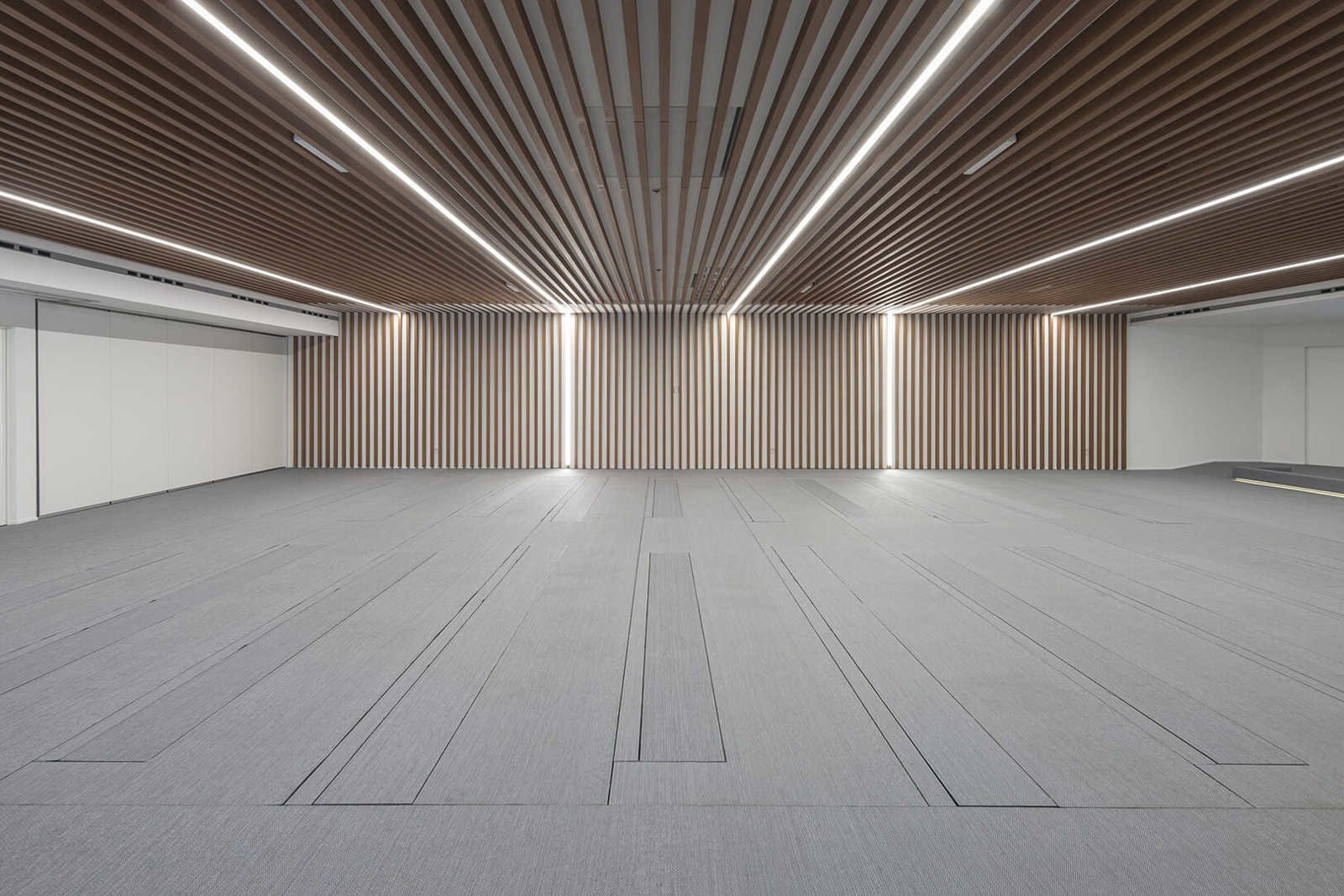 Beschikt over het Floor Technology folding system, wat ervoor zorgt dat de stoelen in één keer onder de grond verdwijnen, waardoor de ruimte leeg is en opgeruimd, schoongemaakt of heringericht kan worden.