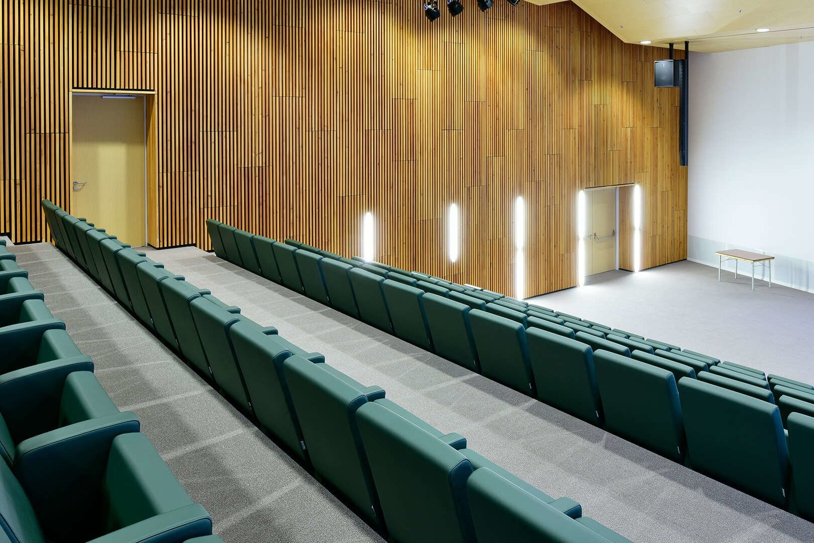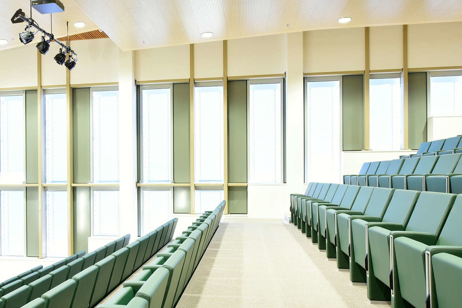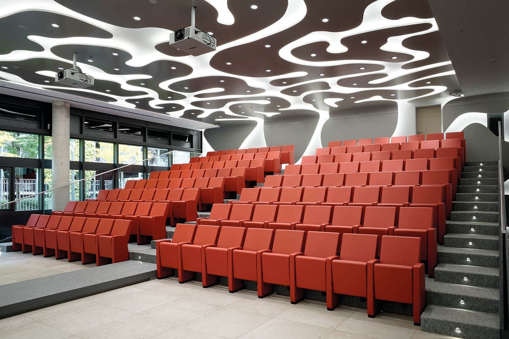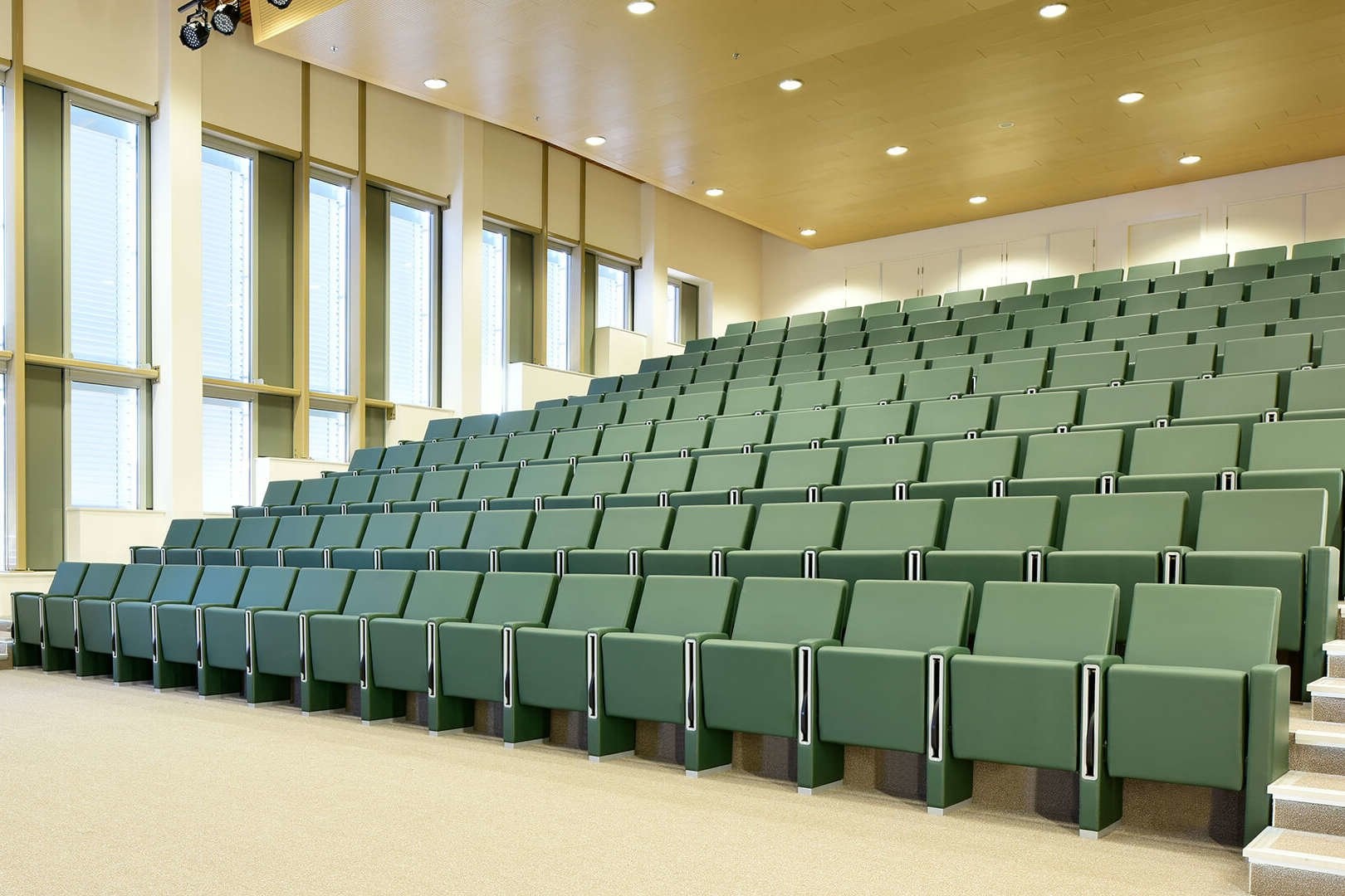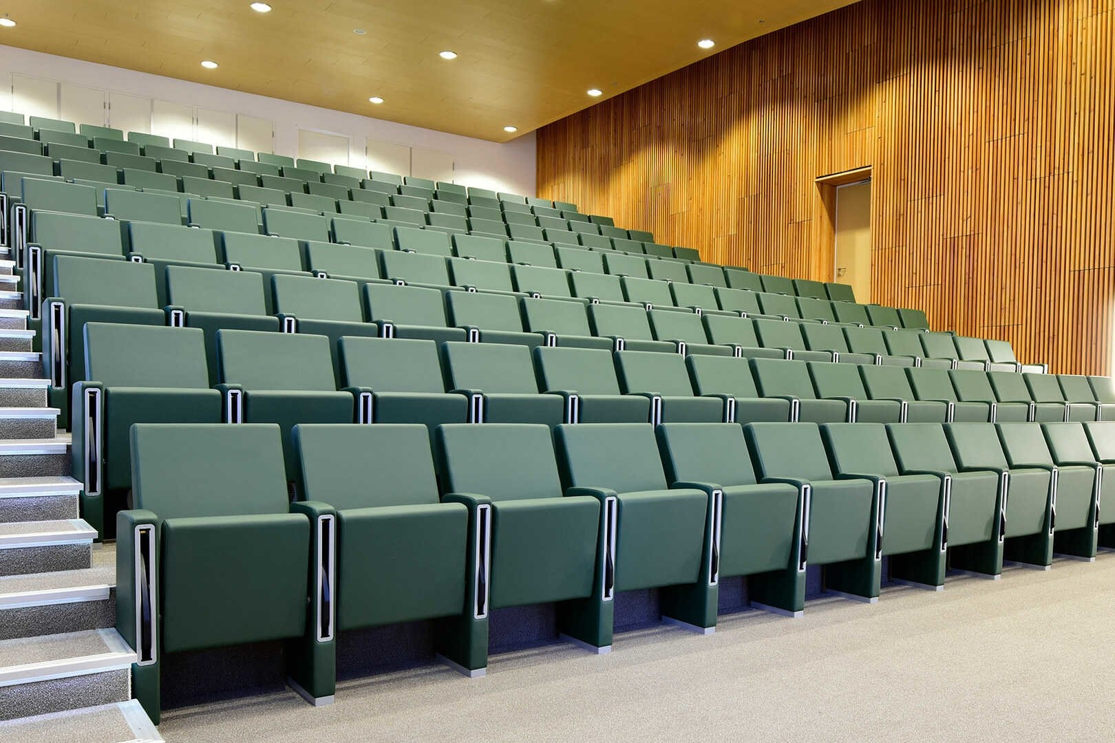 Tevens kan de M100 stoel worden voorzien van een schrijftafel of bekerhouder, wat perfect is voor in een collegezaal, congreszaal of auditorium.