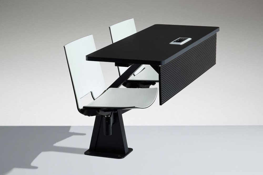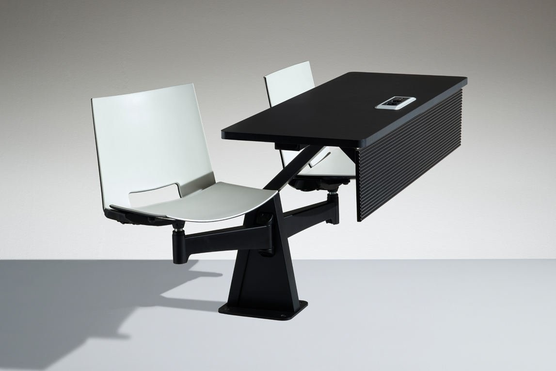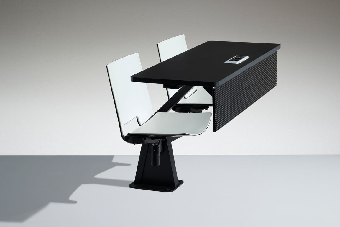 De Lamm ST12-13 is een ideaal meubel voor educatieve ruimtes/onderwijsinstellingen. Doordat het bureau en de stoelen aan elkaar gekoppeld zijn, kunt u prettig werken of studeren aan de ST12-13. De stoel is draaibaar, hierdoor kunt u zich omdraaien naar de persoon achter u, wat van pas kan komen tijdens bijvoorbeeld een overleg. De Lamm ST12-13 kan dienen als werkplek of studeerplek. Uw laptop of telefoon hoeft dan ook nooit leeg te raken, want de tafel kan over elektrificatie beschikken. Door het toevoegen van stopcontacten kunt u langer doorwerken zonder gestoord te worden door lege batterijen van uw elektronica. Ideaal voor in de collegezaal of zalen waar lezingen worden gehouden. Meer over de Lamm ST12-13