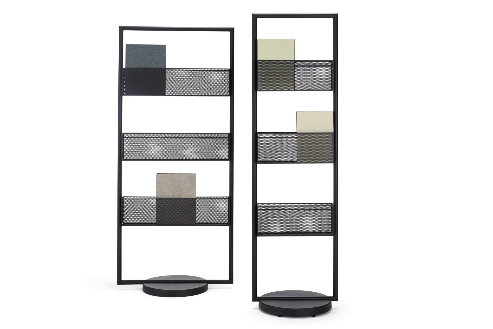 Het Magazinerack heeft een voetplaat van gegoten ijzer in structuur poedercoating, zwart of wit, voorzien van verstelbare voetjes. Deze is optioneel met draaibare voetplaat te verkrijgen. De brochurestandaard heeft een frame van 28 mm stalen buizen in poedercoating of verchroomd, breedte 50 of 75 cm. Magazinerack wordt incl. 3 stuk boxen van gepoedercoat geperforeerd ijzer geleverd.