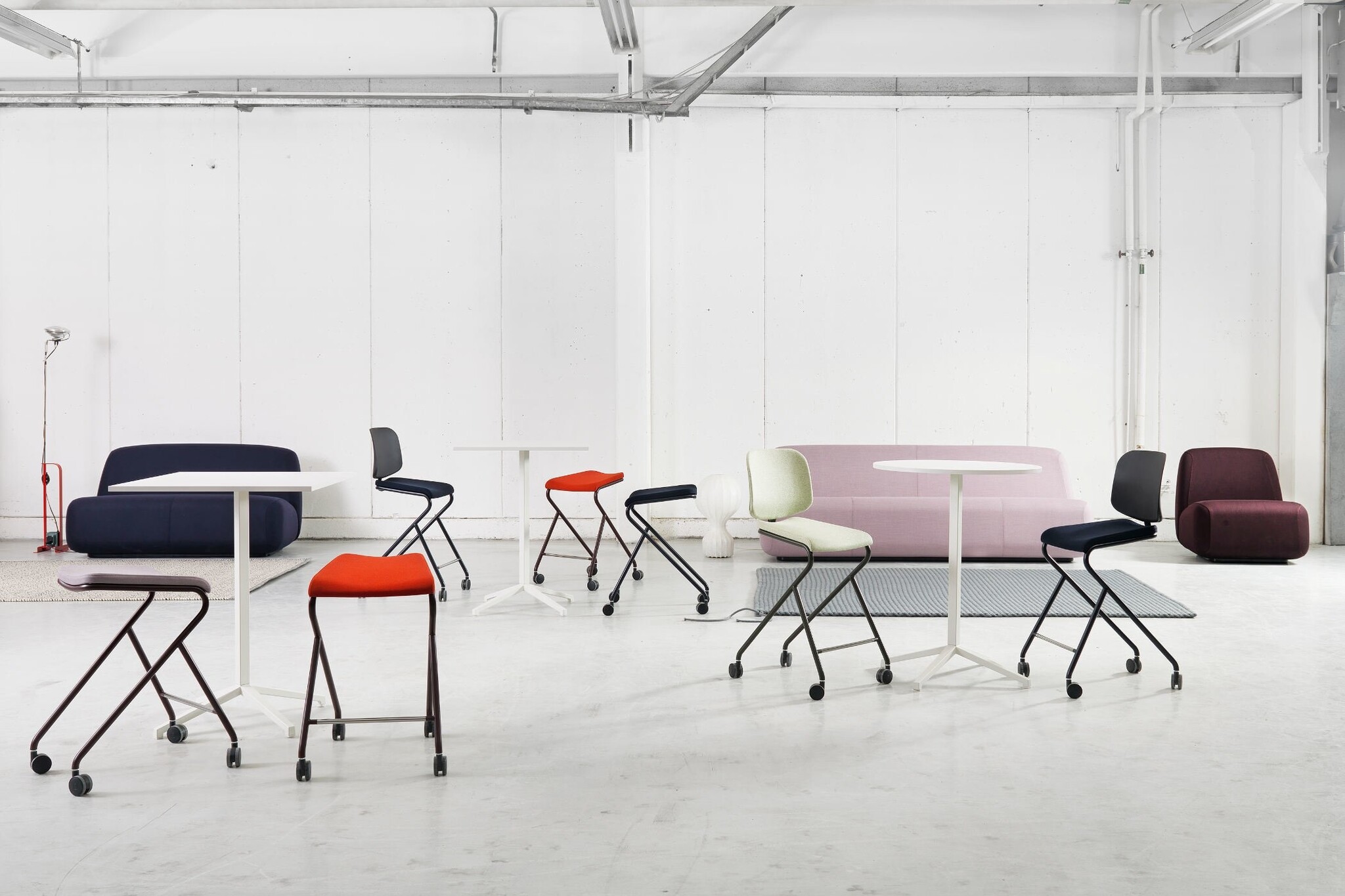 De Add serie van Lammhults heeft een uitbreiding gekregen: de Add Move. Dit is een stoel of kruk die vier poten op wieltjes heeft. ontwerp Anya Sebton. Hierdoor ben je makkelijk verplaatsbaar om even aan te schuiven bij een collega of kort overleg.