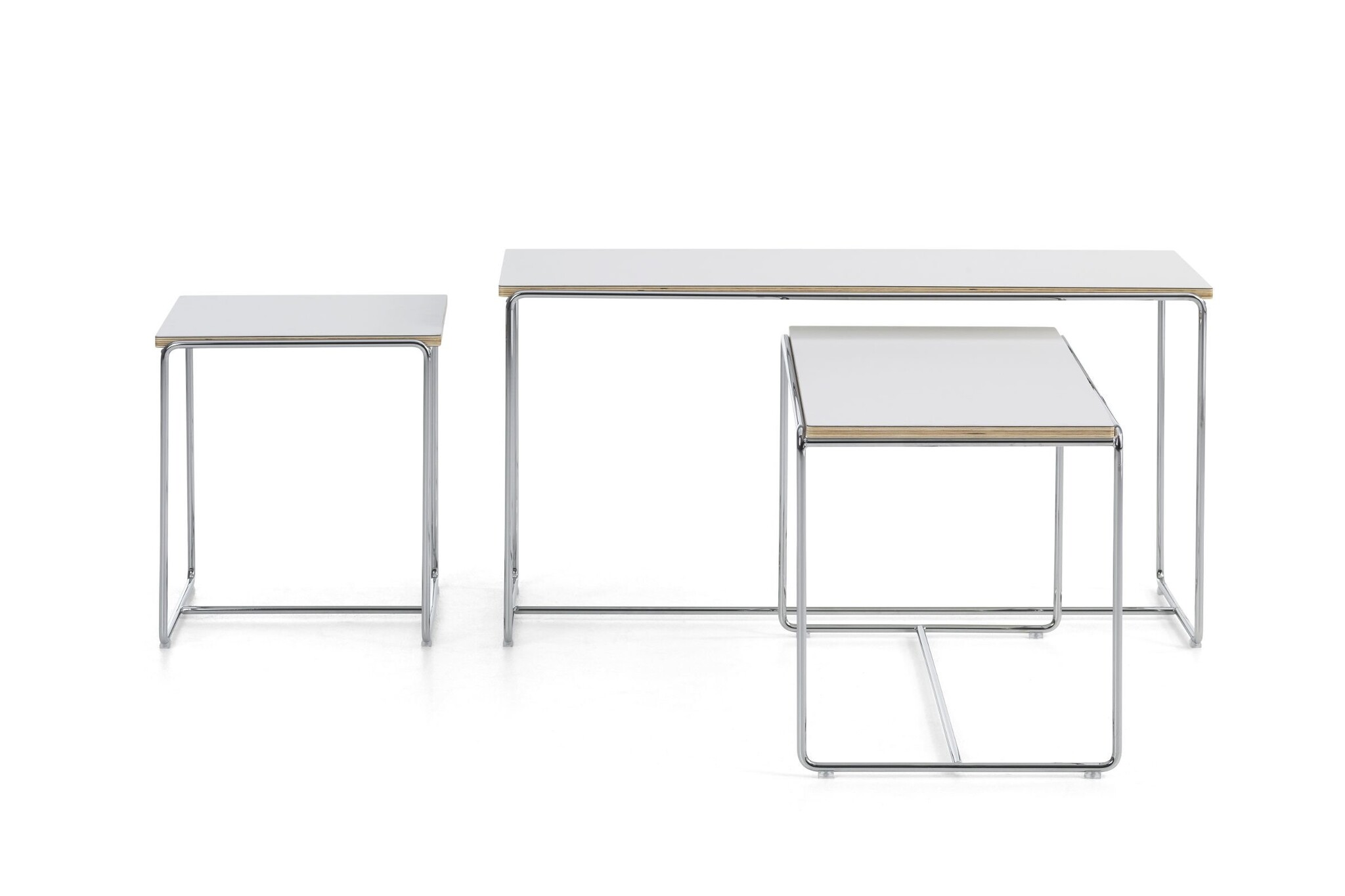 Lammhults Cajal tafel is een reeks kleine, eenvoudig te plaatsen tafels in verschillende hoogtes, vormen en materialen. Ontwerp Gunilla Allard. Kenmerken Lammhults Cajal tafelHet frame van de tafel is gemaakt van een 12 mm met poedercoating of verchroomd massief staal. Het tafelblad is van 16 mm multiplex met natuurlijke of gebeitst essen fineer. Linoleum, champignonkleur of houtskoolkleur is ook mogelijk. De tafel met de afmeting 40x40 cm is ook verkrijgbaar in Carrara marmer. Mix en match; je kunt ze alleen plaatsen of met twee of meerdere tafels naast elkaar. Door de verschillende hoogtes overlappen de tafels elkaar en zijn mooie combinaties mogelijk.