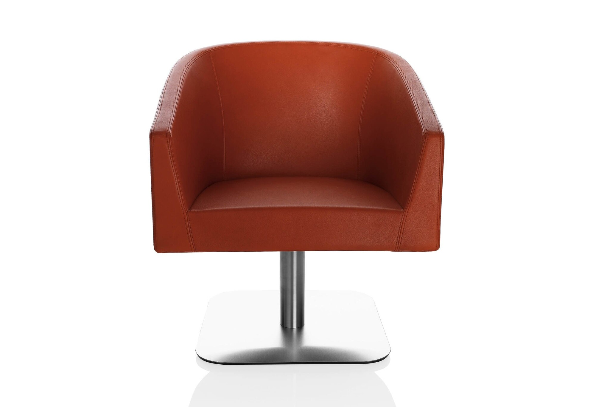Lammhults Club designfauteuil leverbaar met draaivoet of sledevoet. Ontwerp Johanannes Foersom. Leverbaar met 2 soorten onderstellen, met draaivoet of sledevoet. Lederen bekleding in verschillende kleuren.Over Lammhults