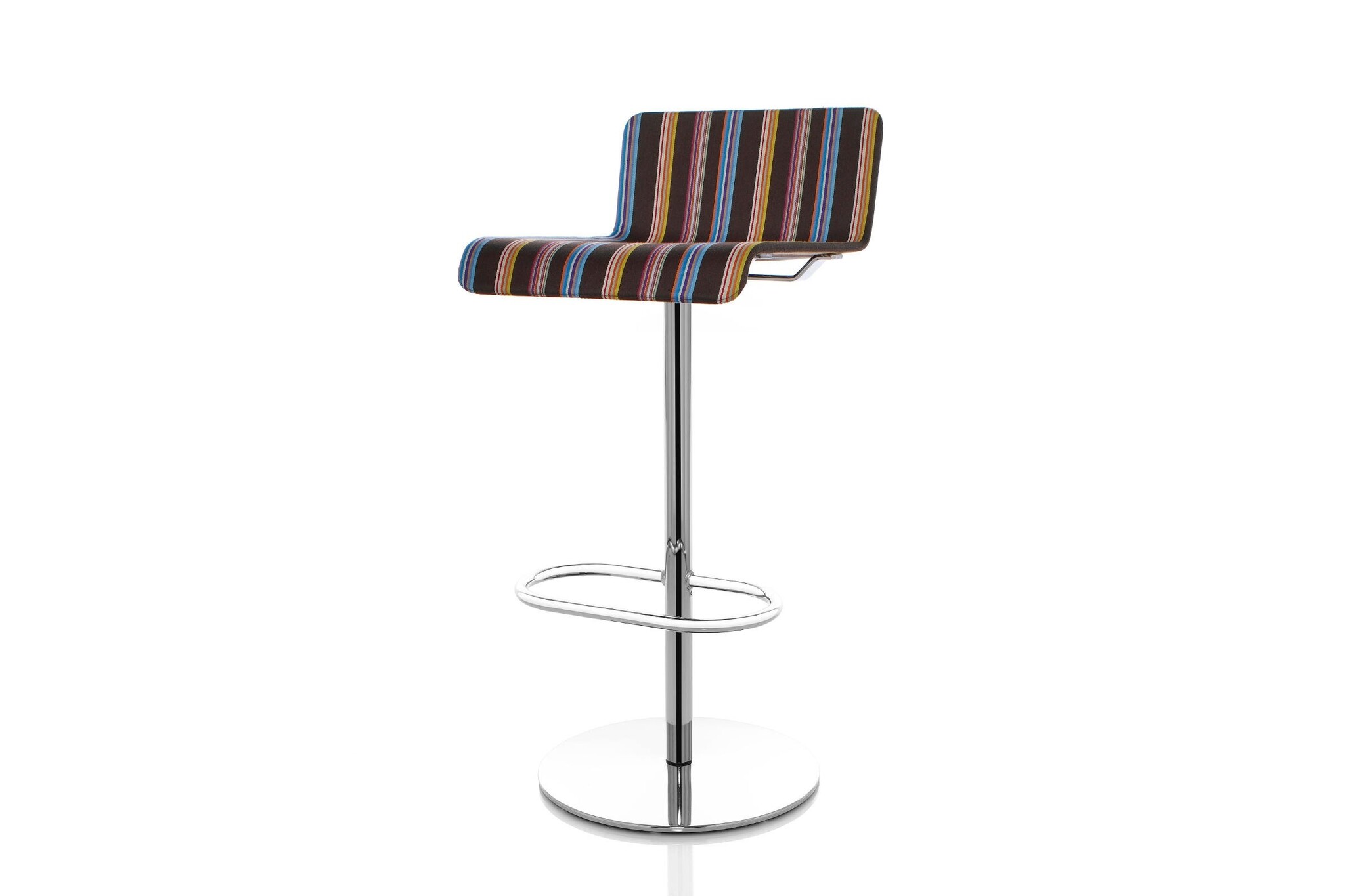 Lammhults Millibar Barkruk is leverbaar in twee zithoogtes: 72 cm en 79 cm. Ontwerp Anya Sebton. Bekleding in kunststof stof leer.