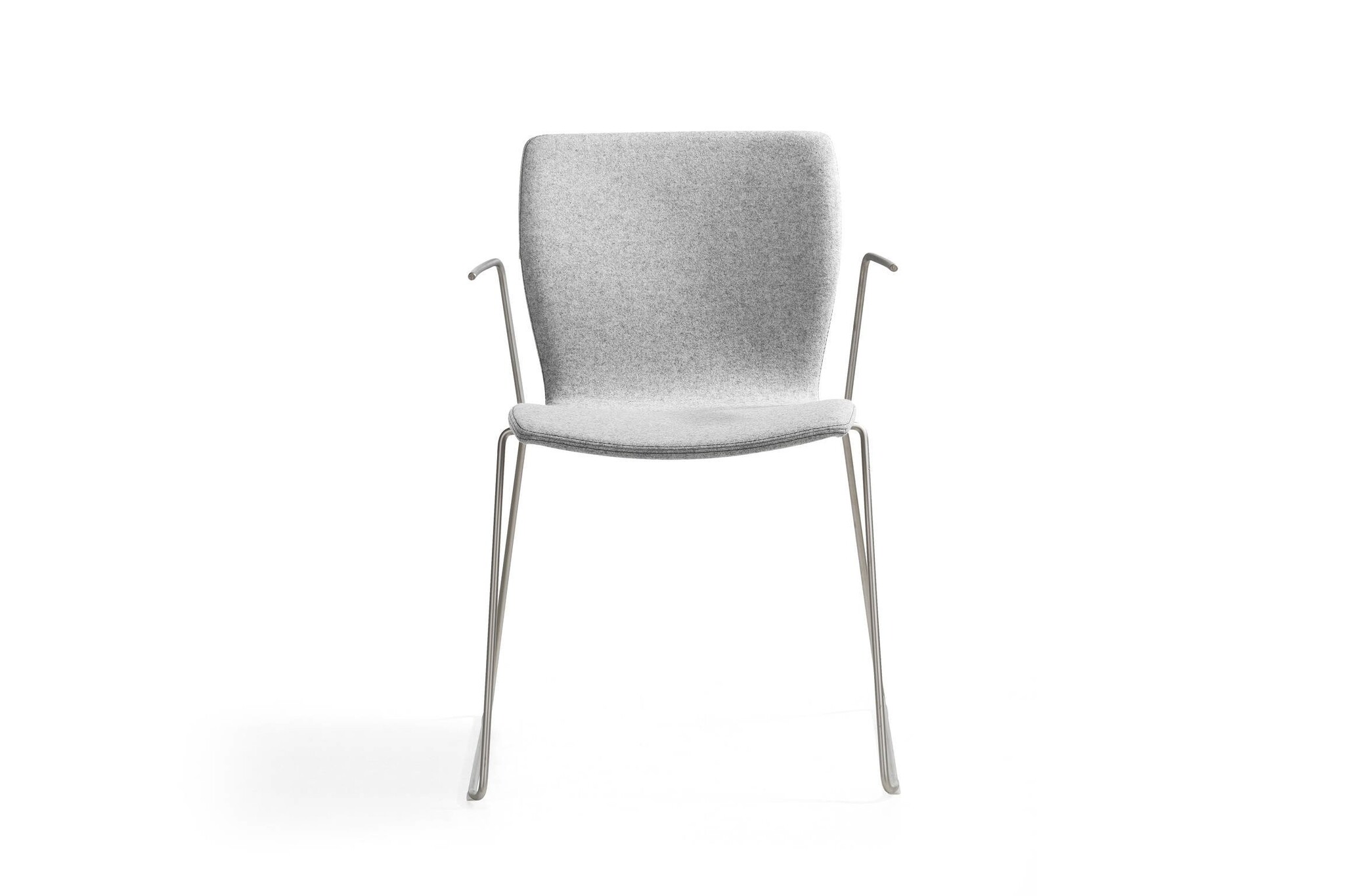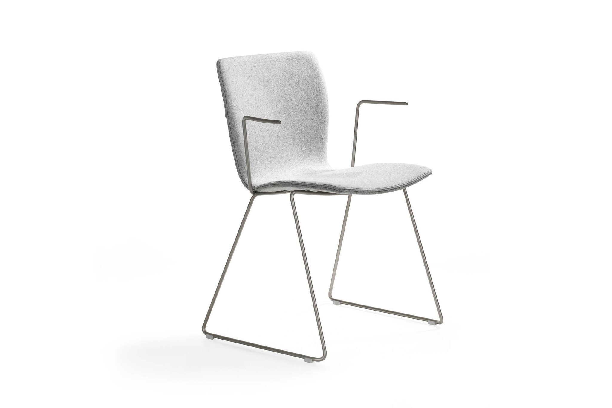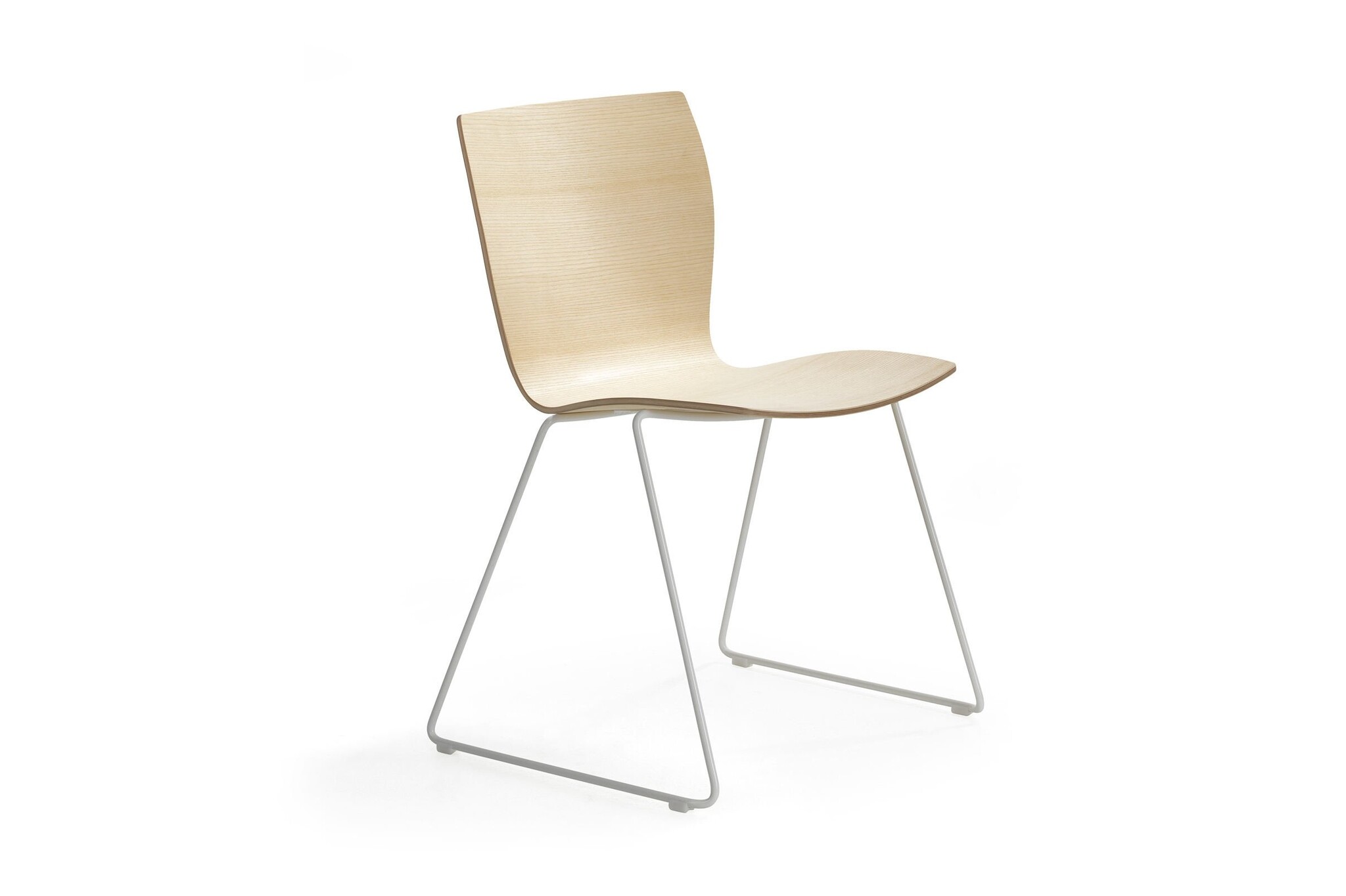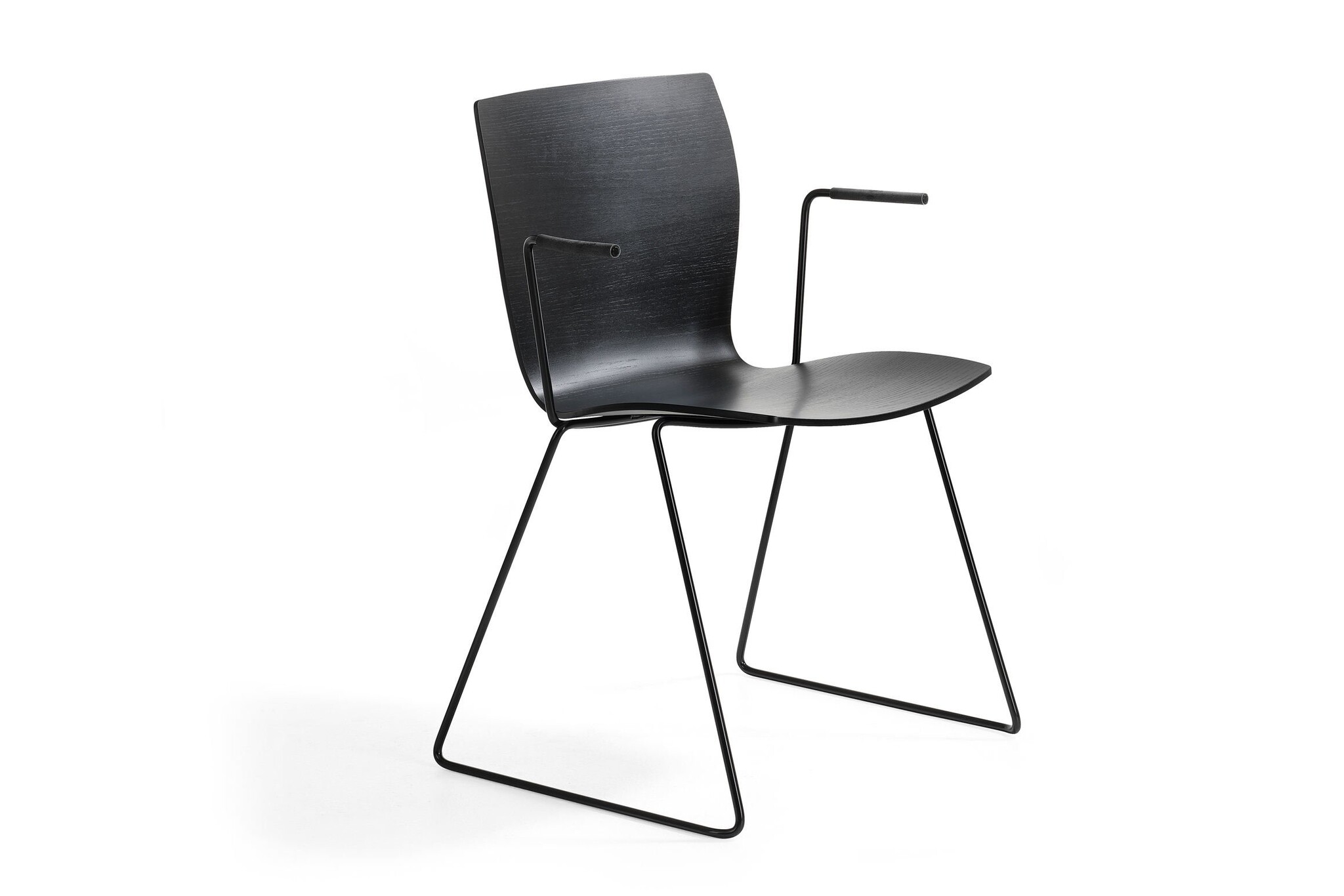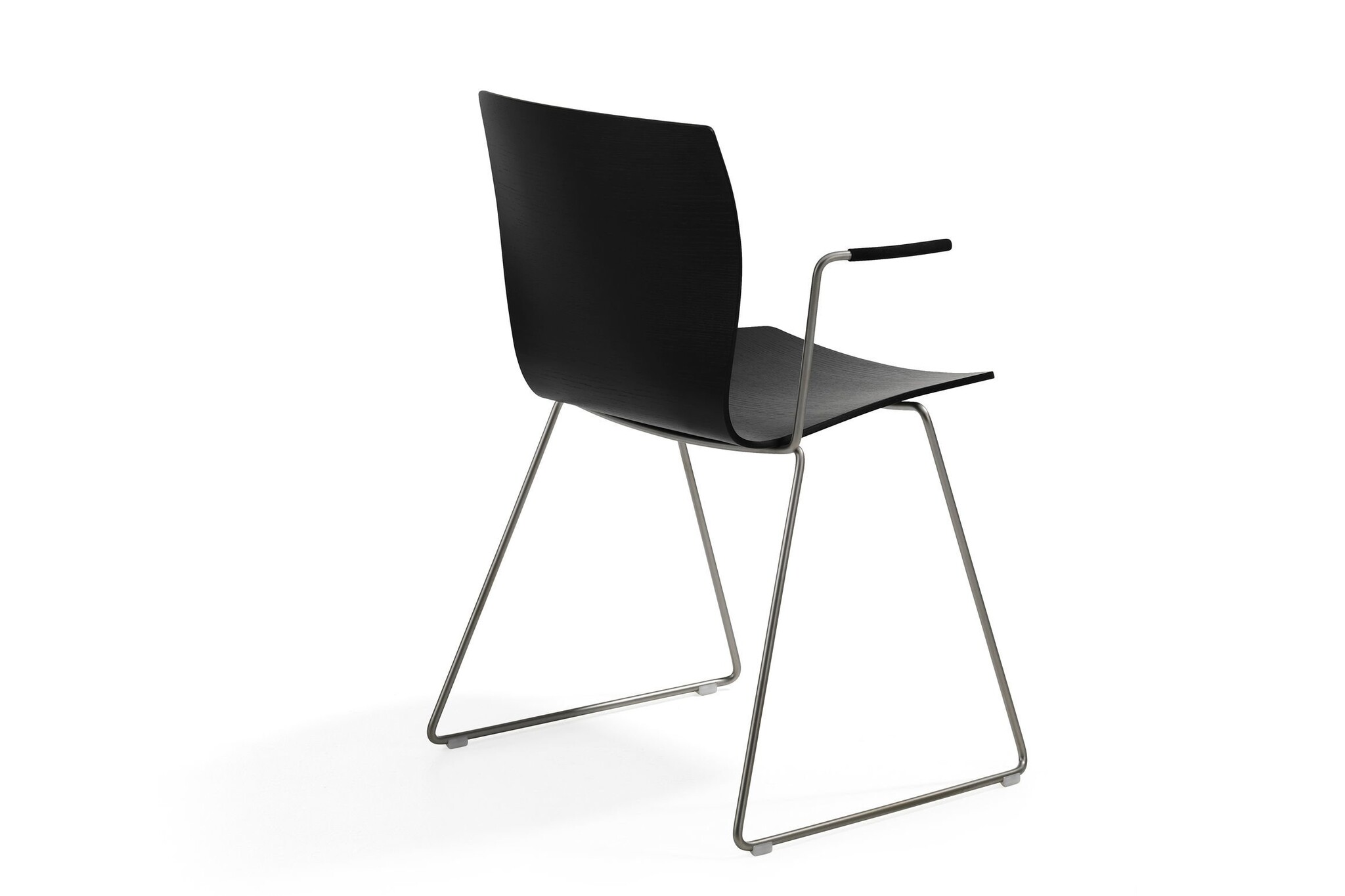 De gevormde zitschaal is verkrijgbaar in natuurlijk of gebeitst as. Optioneel is de stoel te bekleden in stof of leder en voorzien van een veerkrachtig polyurethaan schuim. Deze stapelbare stoel is leverbaar met of zonder armleuningen. De armleuning is van zwart plastic.