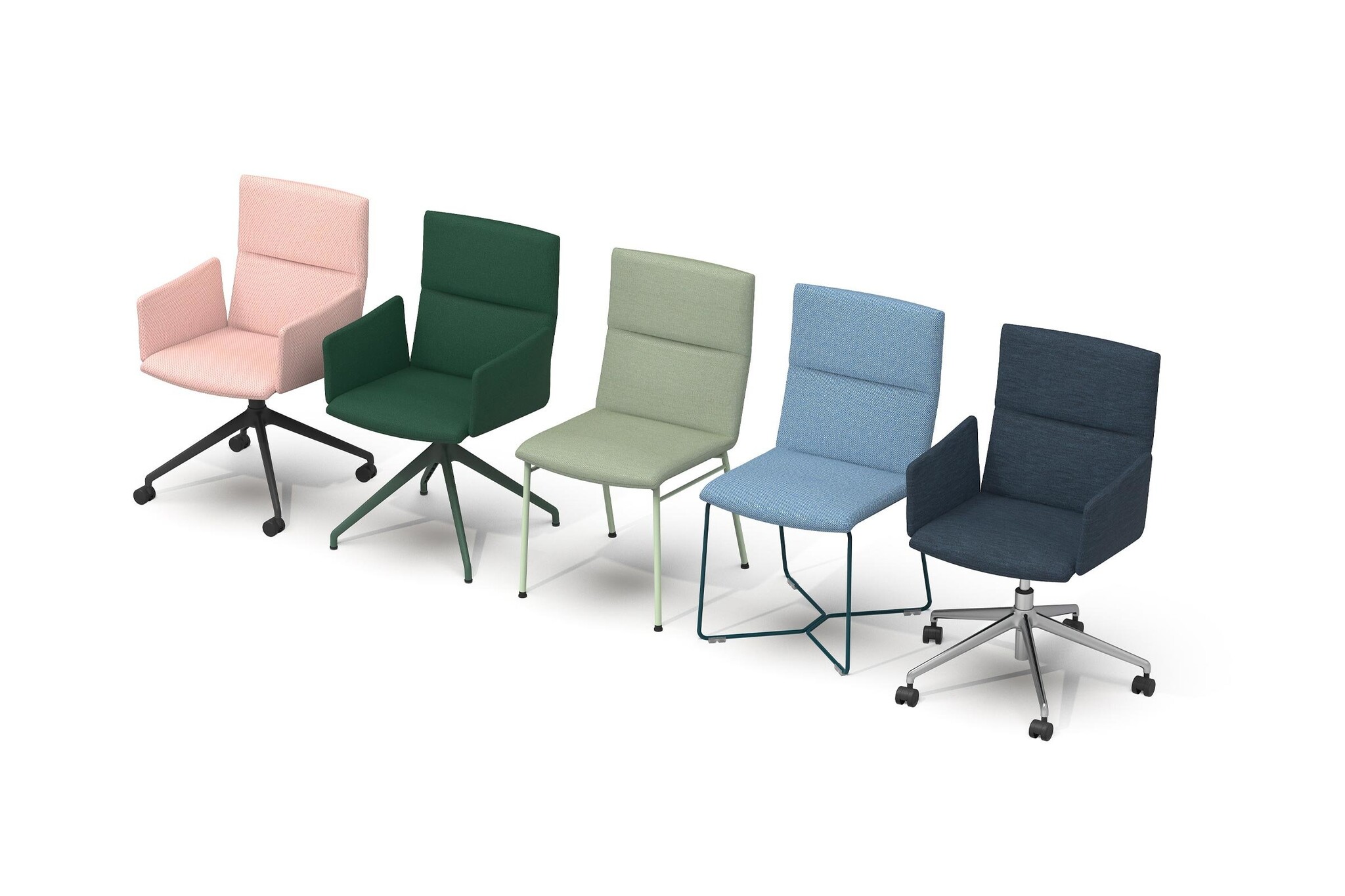 5-teens draaibaar en in hoogte verstelbaar met of zonder armleuningen in een standaard poedercoatkleur of aluminium gepolijst
