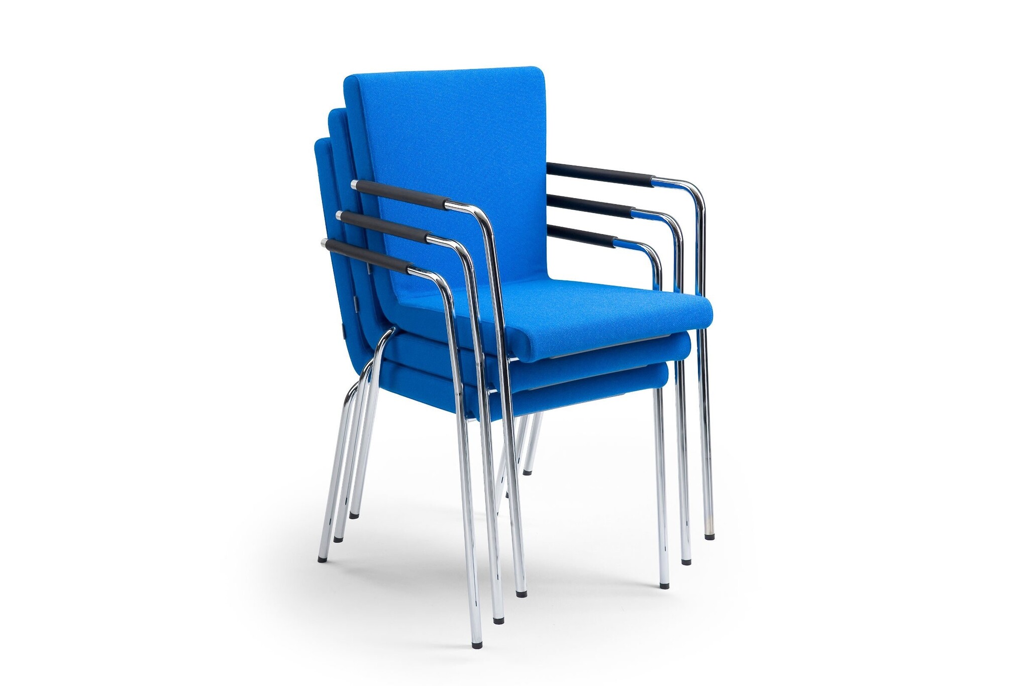 De Hopper is een stapelbare stoel met hoge of lage rug, met en zonder armleuningen, stapelbaar, schuine poten, rechte poten, 5-teens, stof of leer. De Hopper van Lande is een stoel met veel mogelijke uitvoeringen. Over Lande