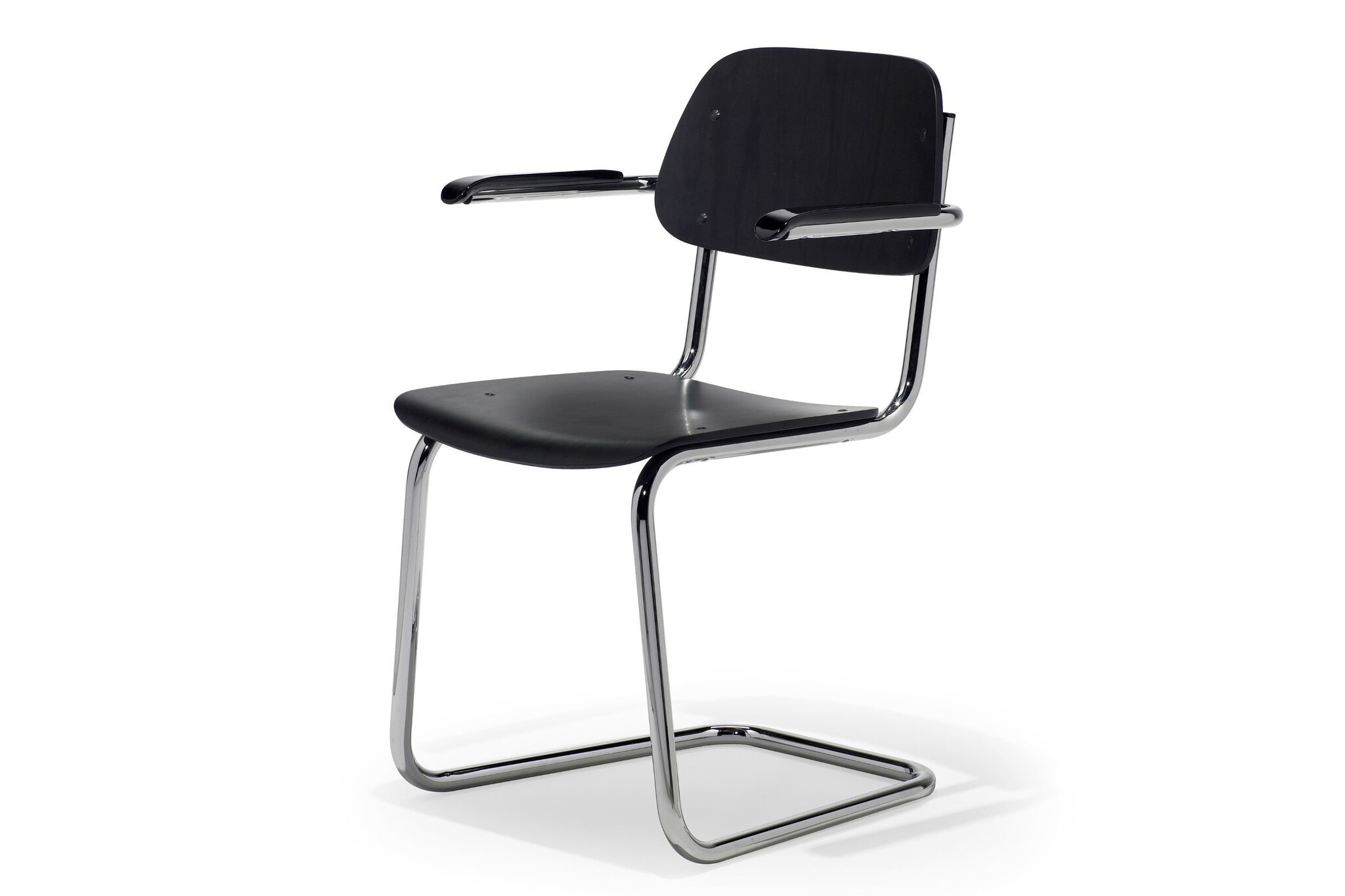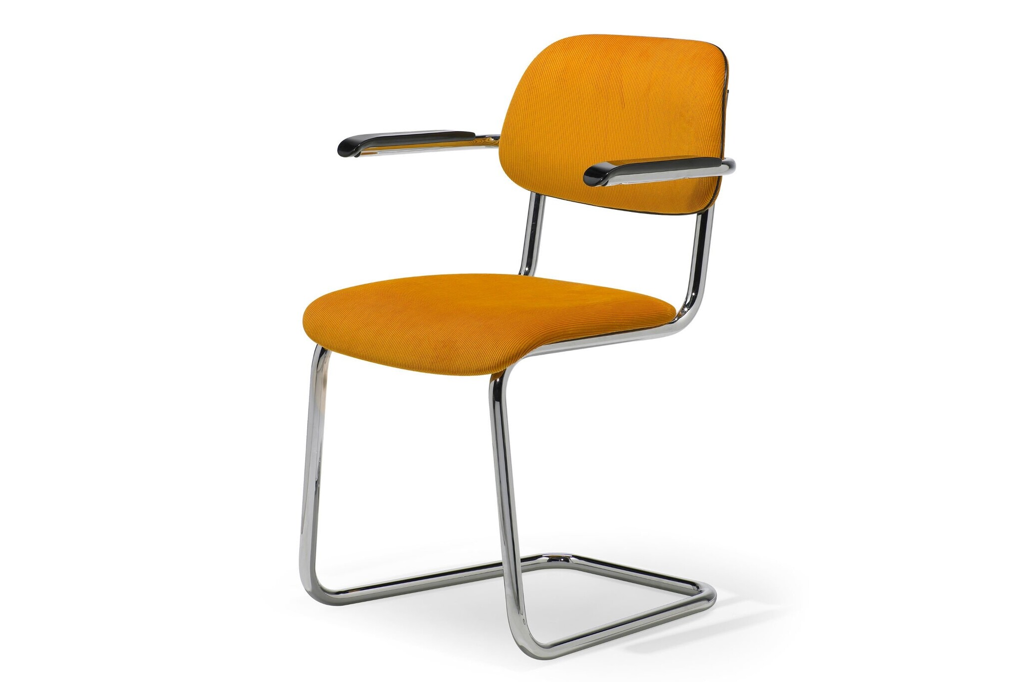 De Jami van Lande stoel is leverbaar in een sledemodel en vierpootmodel. Over Lande