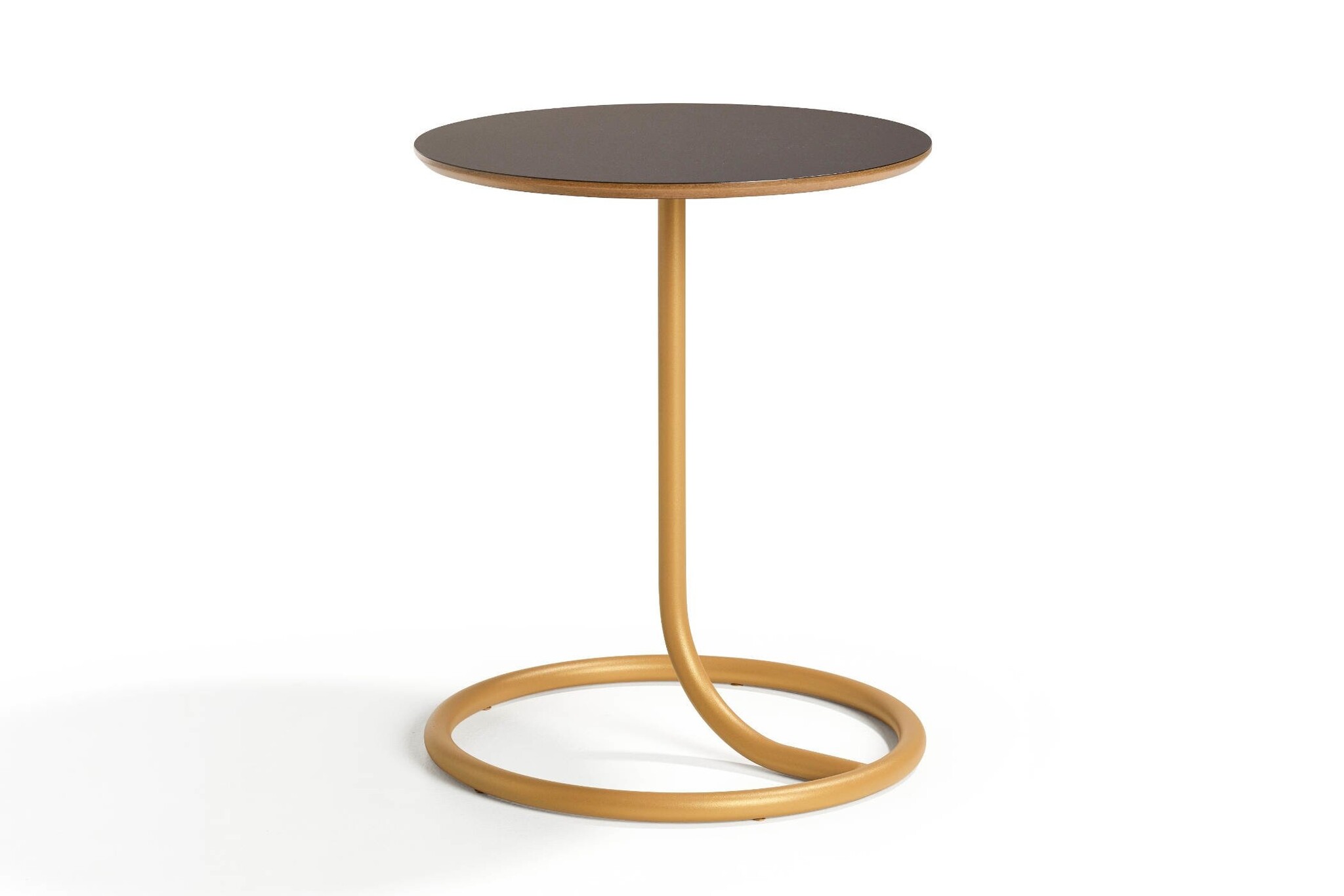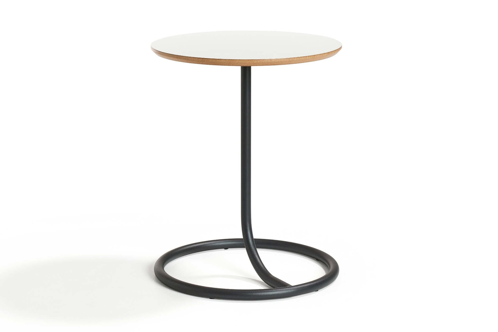 Kenmerkend aan het ontwerp van de L-IOT is het spel van ronde vormen van de voet en het tafelblad.