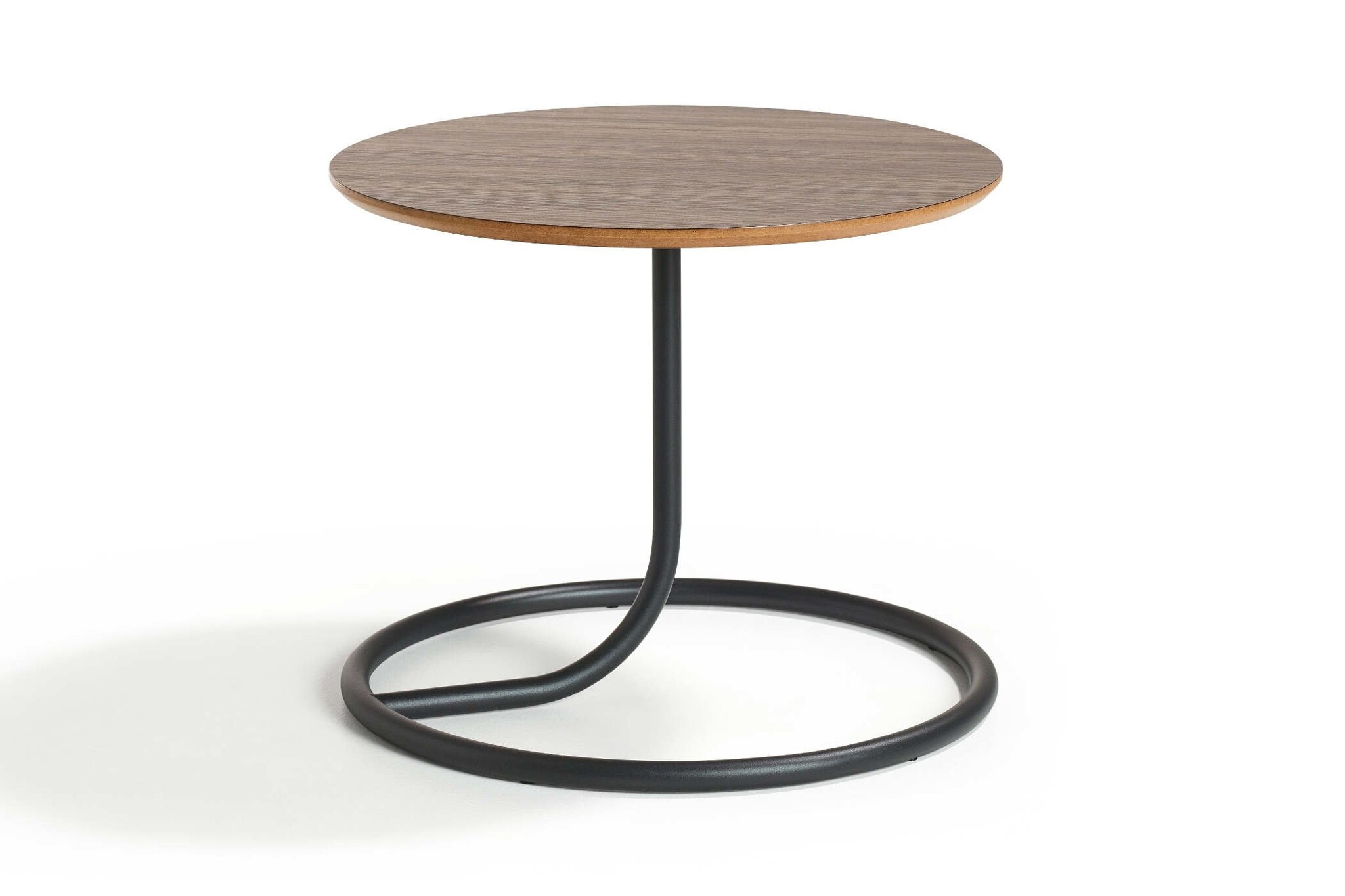 Tafelblad in fineer, laminaat A of B. Frame in alle poedercoat kleuren uit de Lande collectie.