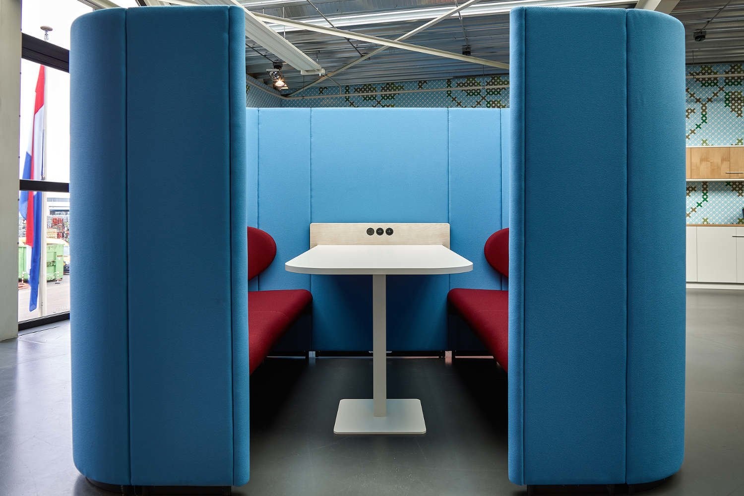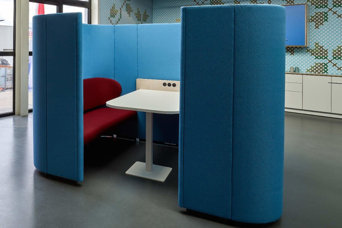 Met de Rondo Box van het merk Lande kun je een open kantoor of ruimte naar wens indelen. Deze akoestisch werkplek kan in principe in elke stof gestoffeerd worden.