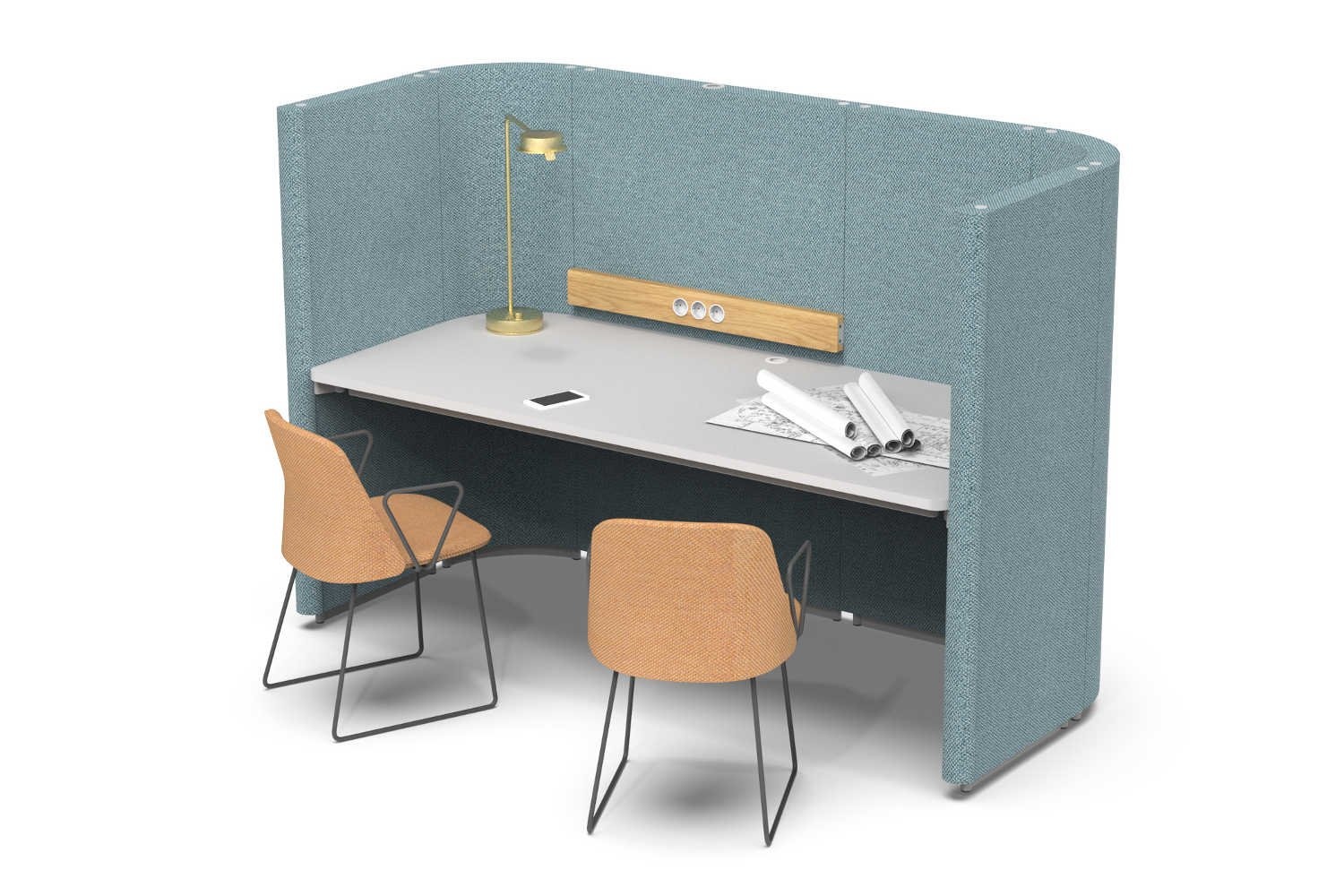 Lande Rondo Lavoro is een akoestisch bureau om geconcentreerd te kunnen werken. Het afgeschermde bureau nodigt uit tot samenwerken, maar kan prima solo gebruikt worden. Met de Lande Rondo Lavoro zorg je voor een geluidswerende afscherming in een open ruimte, zodat je niet gestoord wordt. Ideaal te gebruiken in een open kantoorruimte. De Rondo Lavoro is te koppelen met andere meubels uit de Rondo collectie. Creëer een slinger van een aantal geschakelde akoestische bureaus in een open kantoorruimte.