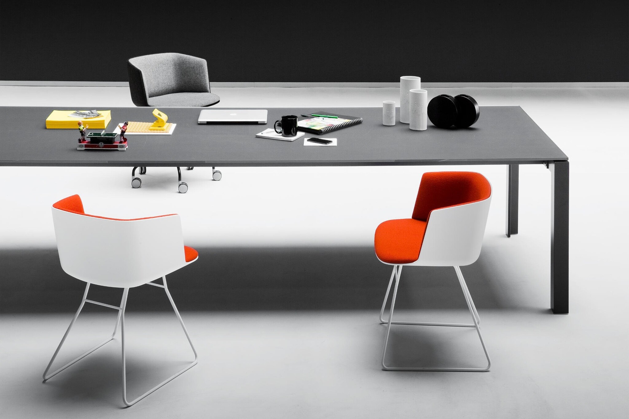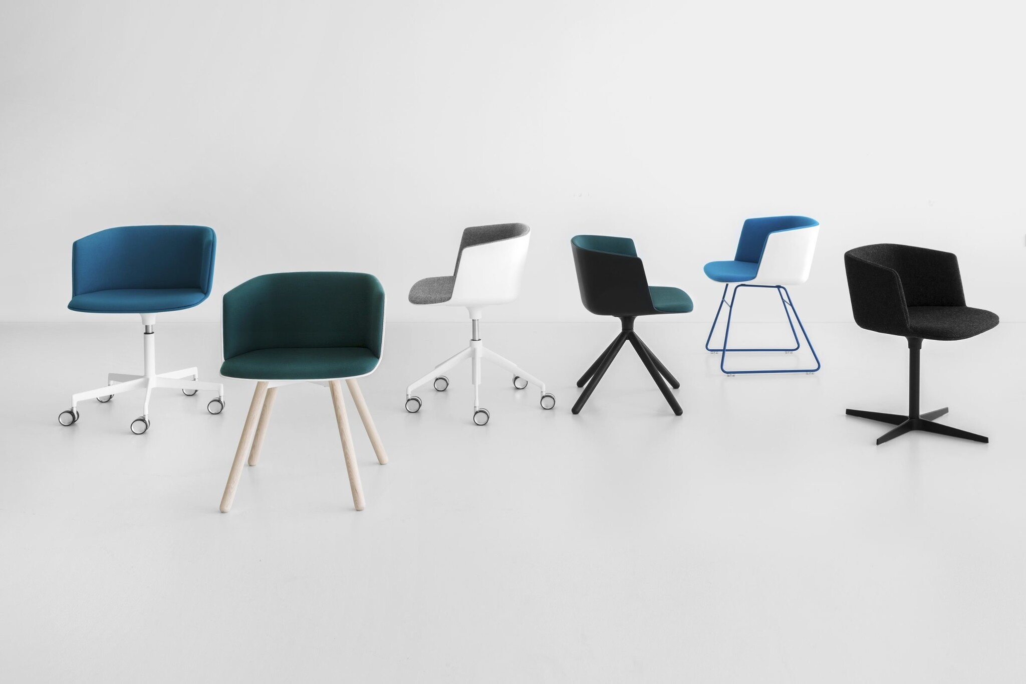 Lapalma Cut stoel omvat een verscheidenheid van vormen en persoonlijkheden. Speciaal voor buiten is er buitenmeubilair, deze stoel is onbekleed, terwijl er ook uitvoeringen zijn voor binnen voorzien van een eenvoudige kussen, een gewatteerde zitting of in een zacht en volledig gestoffeerde uitvoering. De veelzijdige Lapalma Cut is de ideale stoel voor verschillende ruimtes binnen het kantoor. Een mooie aanvulling voor het entree, als vergaderstoel of in het bedrijfsrestaurant. De Cut stoelen hebben nu ook een 4 poots houten onderstel, ze waren al eerder ook in hout verkrijgbaar echter alleen als stervoet). Deze is te zien in afbeelding 11. De Cut stoelen hebben nu ook een 5 teens verrijdbaar onderstel op vaste hoogte als ook nu in hoogte verstelbaar.