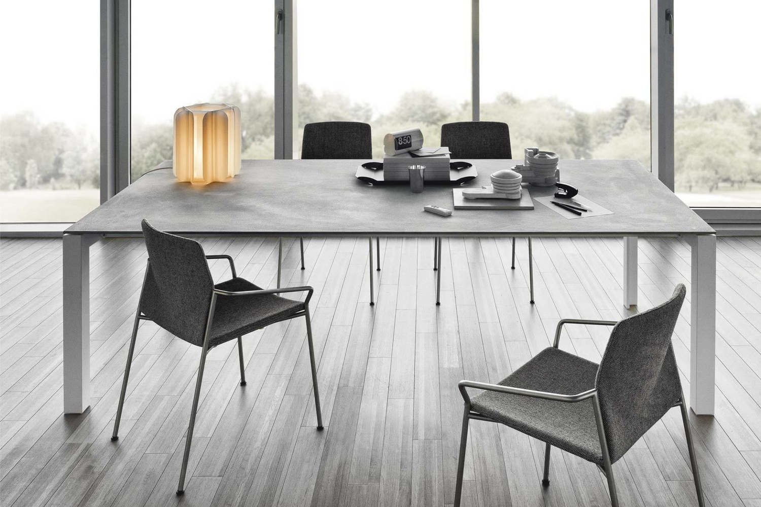 De gebogen plywood zitting is verkrijgbaar in verschillende afwerkingen, met oplegkussen op aanvraag of volledig bekleed met stof. We raden aan om een bescherming op de lederen zitting te plaatsen als deze wordt gestapeld.