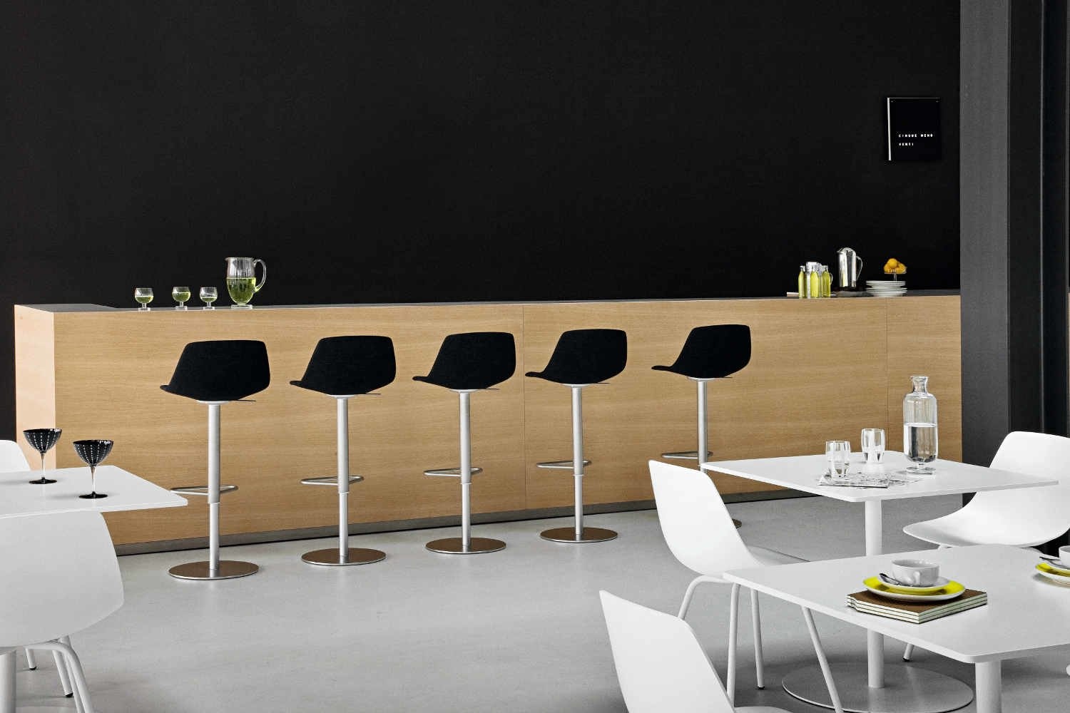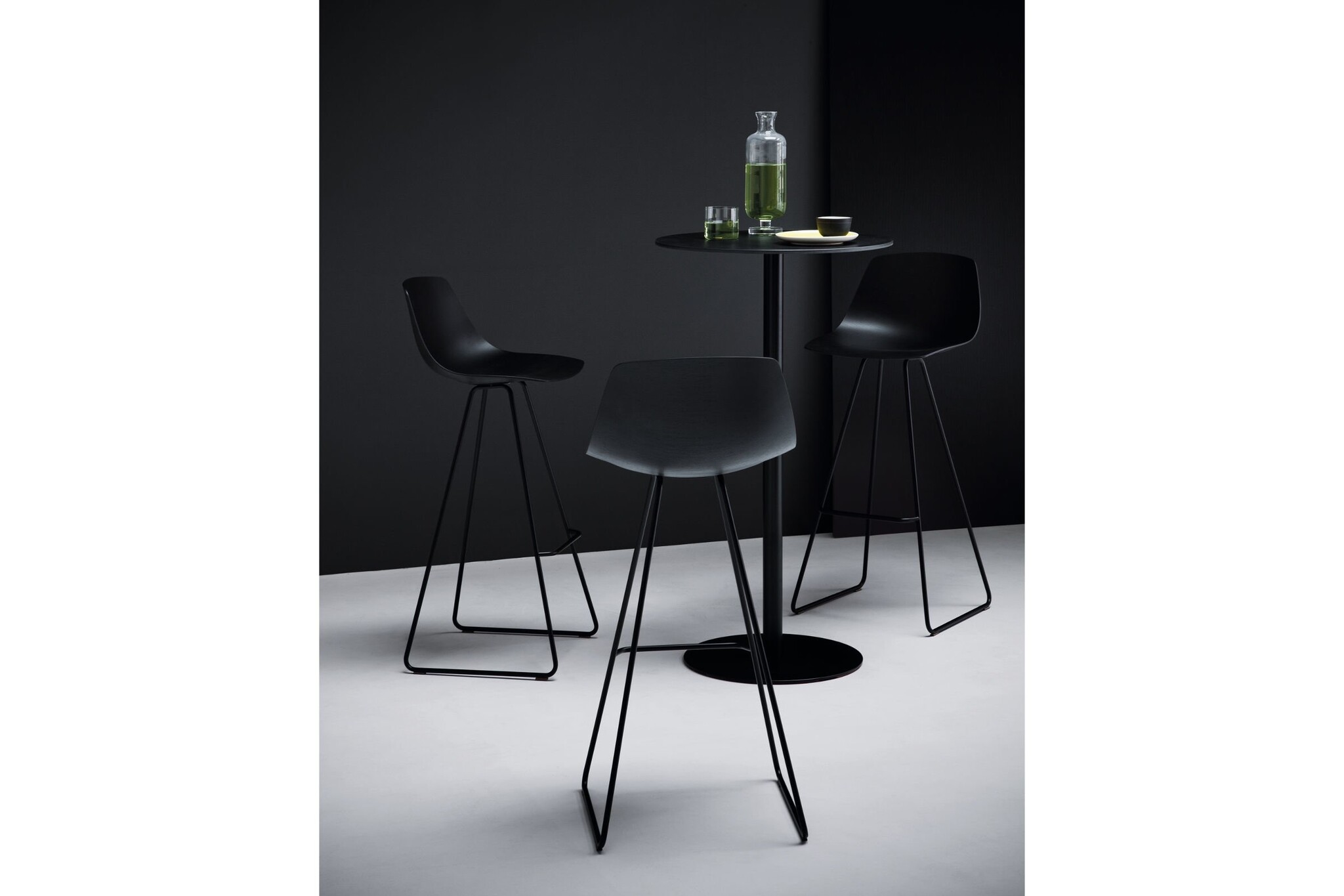Lapalma Miunn serie is ontworpen door Karri Monni. Het zitsysteem heeft een mooie houten afwerking, maar het geheel kan ook bekleedt worden met stof of leer. De kruk heeft een sledestoel / draadframe en de Miunn draaibare kruk is in hoogte verstelbaar (54- 79 cm) door middel van een gasdrukveer. Het frame is van gezandstraald roestvrijstaal en de voetplaat is van staal, afgedekt met een zinkkleurige stalen plaat. De zitting van de kruk is in verschillende hout kleuren leverbaar. Over Lapalma