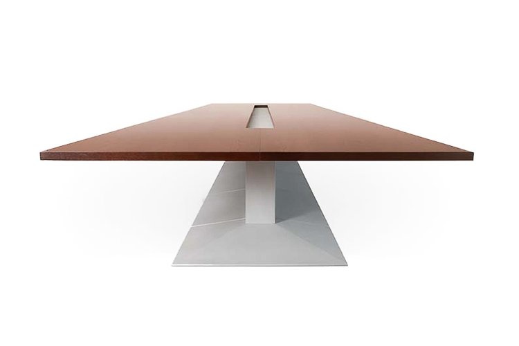 Lensvelt Conference Table bestaat uit een rechthoekig blad op een onderstel. Het blad is leverbaar in een breed scala aan kleuren en materiaaluitvoeringen. Het dragende onderstel is van staal uitgevoerd in antraciet en/of zilvergrijs. De slimme plaatsing van het onderstel resulteert in optimale beenvrijheid. Het complete kabelmanagement is in het onderstel verborgen. De opening in het midden van de Conference Table is afgedekt met een metalen plaat waarin bekabeling van bijvoorbeeld microfoons, kan worden weggewerkt.