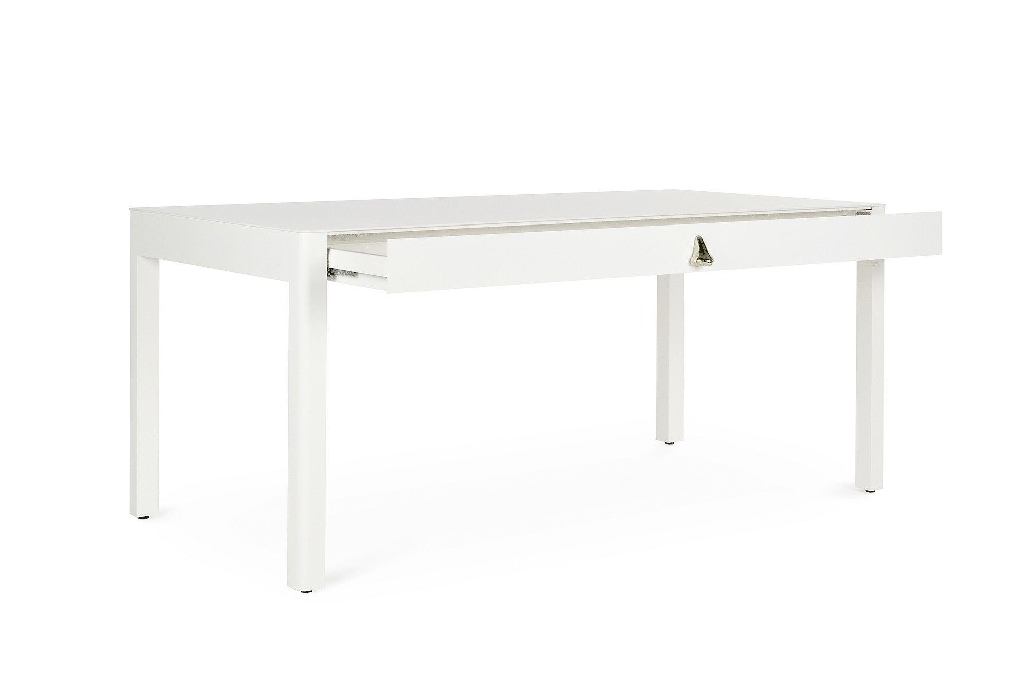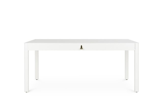 Lensvelt Job Desk is van het zelfde materiaal als de kantoorkasten uit de Job Office collectie. Zowel de tafelpoten als de top van het tafelblad zijn wit gepoedercoat metaal. De tafel is voorzien van een slanke lade. Ook aan de lade zit een opvallend detail, geen sleutel maar een goudkleurige neus.