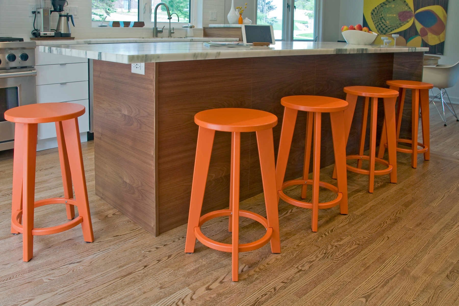 Ze zijn leverbaar in 3 varianten, Dining Stool (lage kruk), Bar Stool (hoge kruk voor aan de hoge bar) en als Counter Stool (tussenmaat).