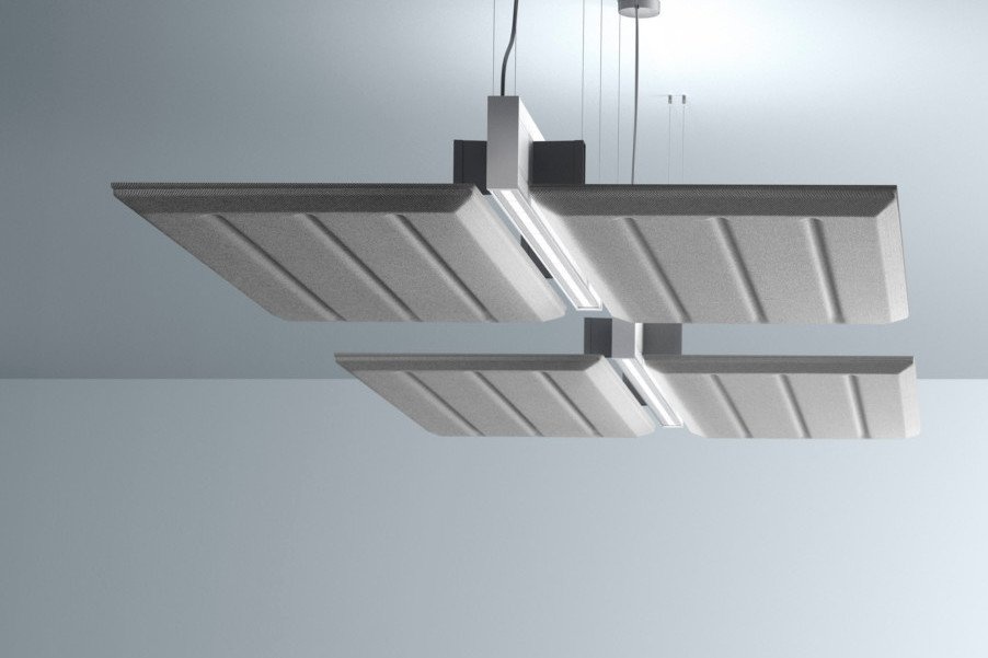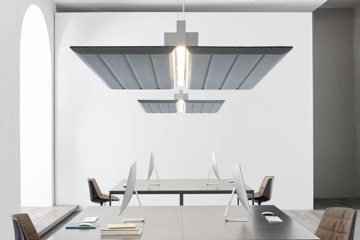 Luceplan Diade zijn technische verlichtingsoplossingen die lichtkwaliteit bieden in combinatie met een hoog niveau van geluidsabsorberende prestaties.