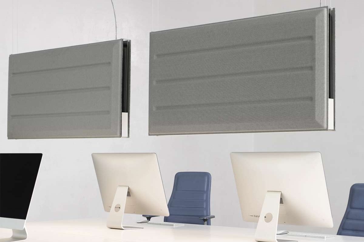 De twee panelen in geluidsabsorberend materiaal kunnen verticaal of horizontaal worden geplaatst.