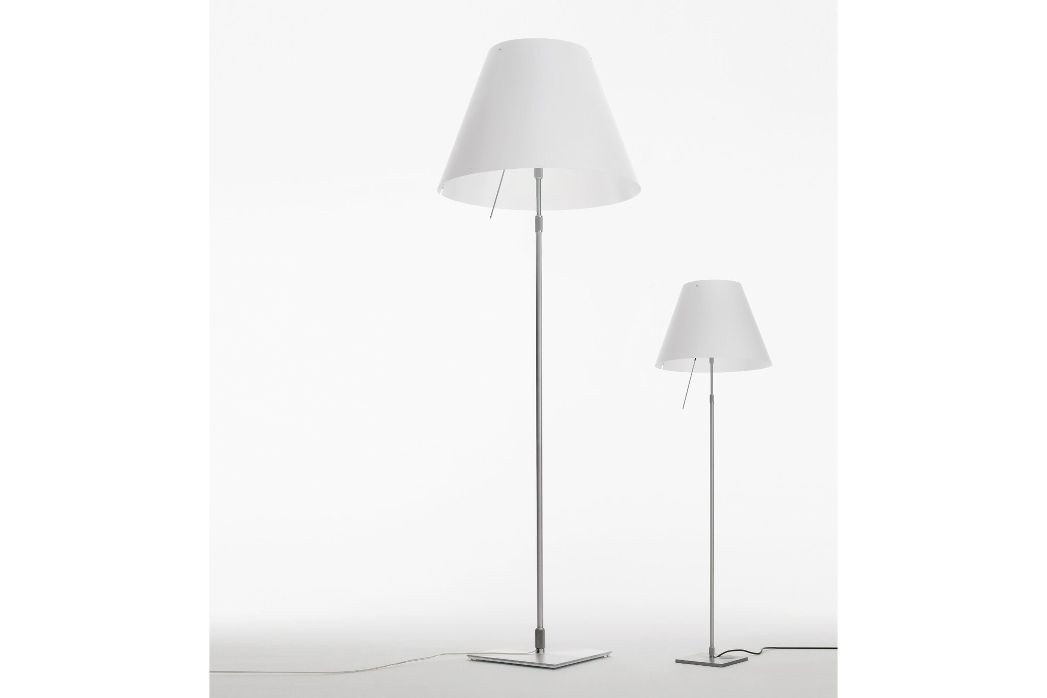 Luceplan Grande Costanza is leverbaar als hanglamp of vloerlamp. Beide uitvoeringen zijn leverbaar met dimmer. De Grande Costanza lamp is gemaakt van kunststof en aluminium. Over Luceplan