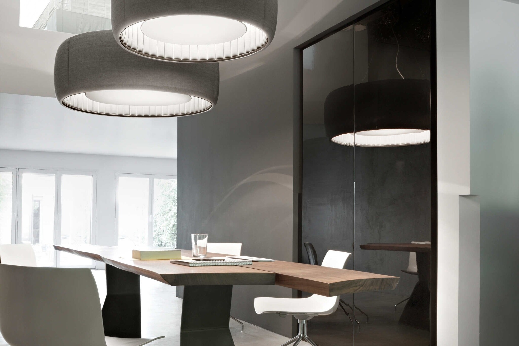 Luceplan Silenzio lamp combineert licht met akoestische comfort. Het verlichtingssysteem Silenzio is er in de uitvoering als plafondlamp en wandlamp. De lampen hebben een hoge mate van geluidsabsorptie en kunnen bekleed worden met een breed scala aan stoffen. Over Luceplan