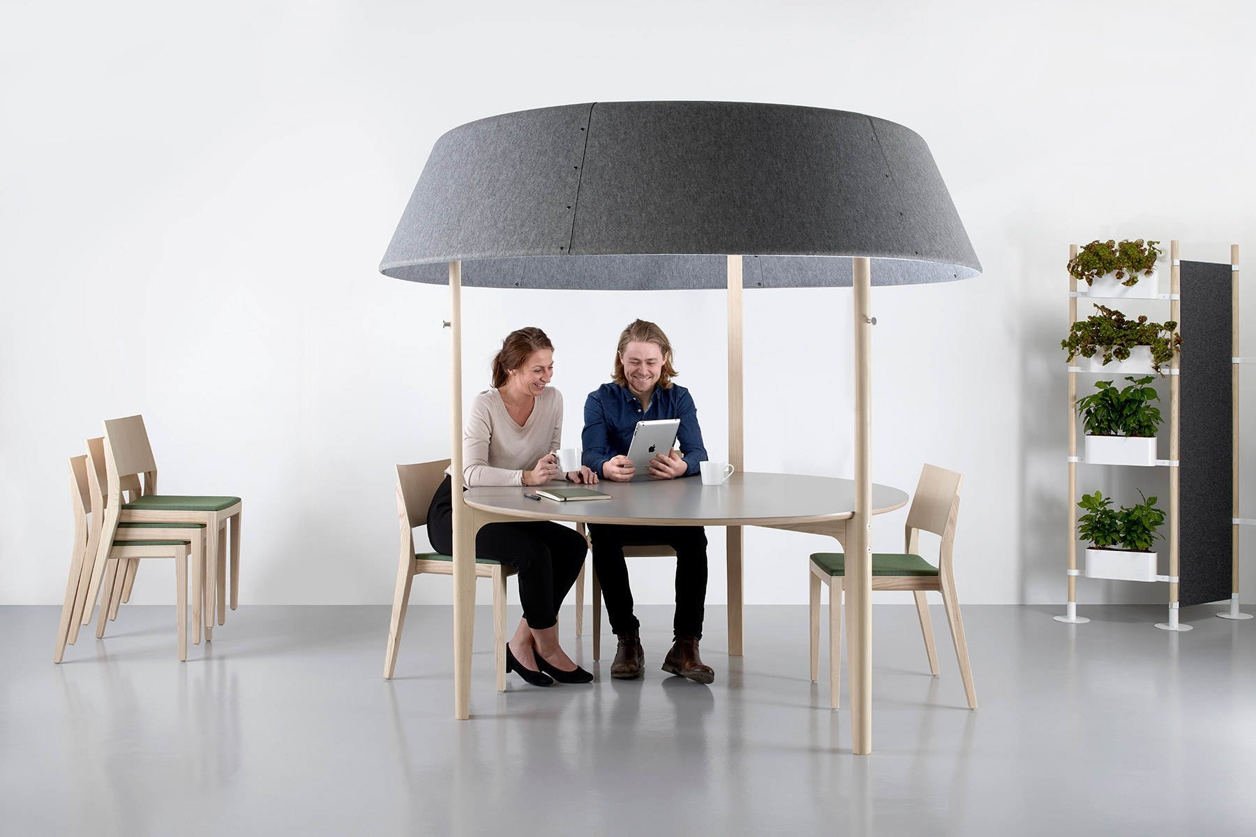 ‘Oas’ is Zweeds voor Oase. Deze nieuwe akoestische tafel werkt als een oase van rust.