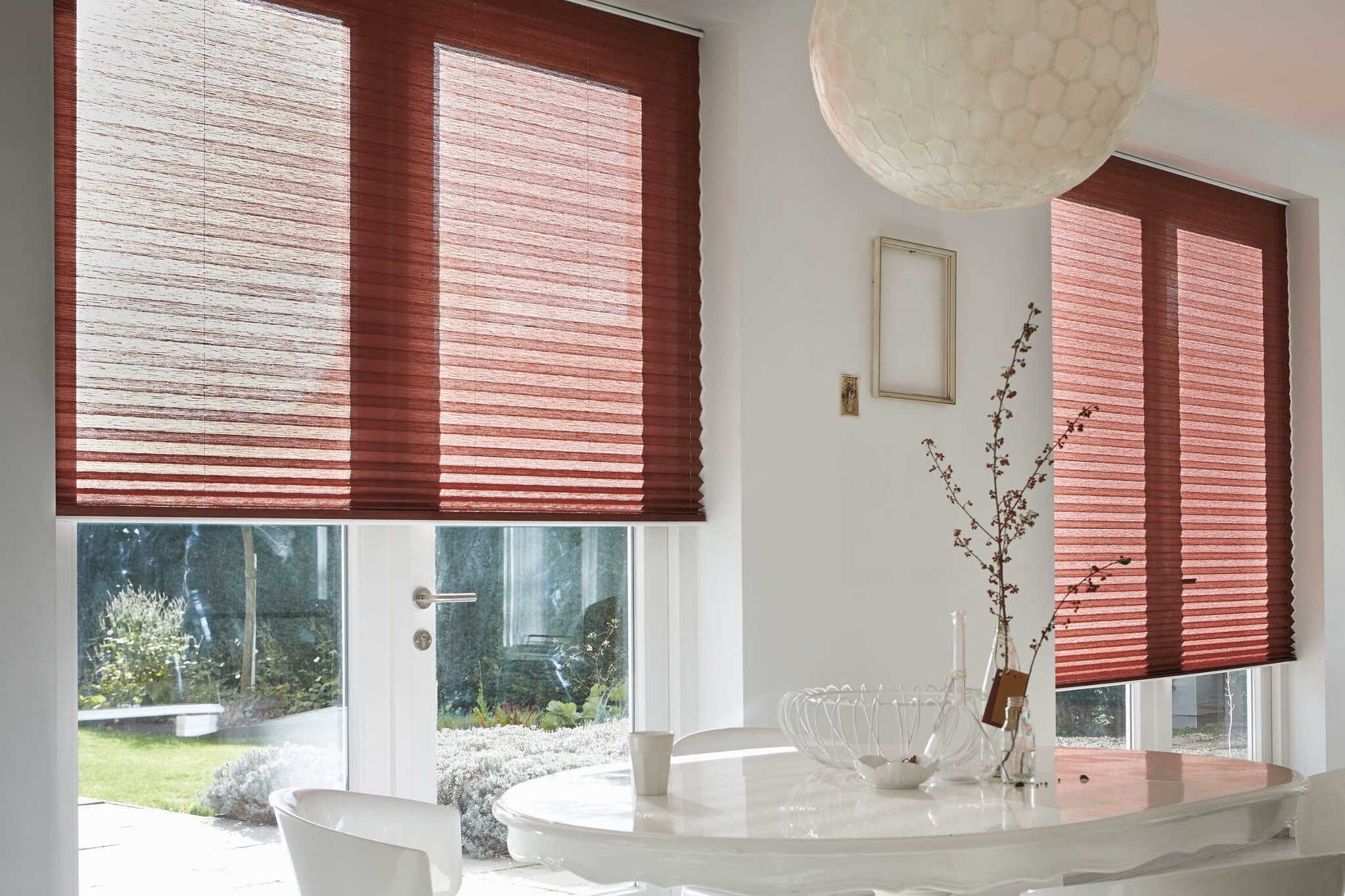 Plissé Shades zijn geschikt voor uiteenlopende raamvormen en beschikbaar in een breed assortiment prachtige stoffen, rijke structuren en kleuren. Er is keuze uit vier transparanties. Ze geven een mooi gelijkmatig plooienpatroon en zijn geschikt voor kantoorramen in diverse vormen. Er zijn twee plooibreedtes beschikbaar. Te combineren met Luxaflex Duette Shades