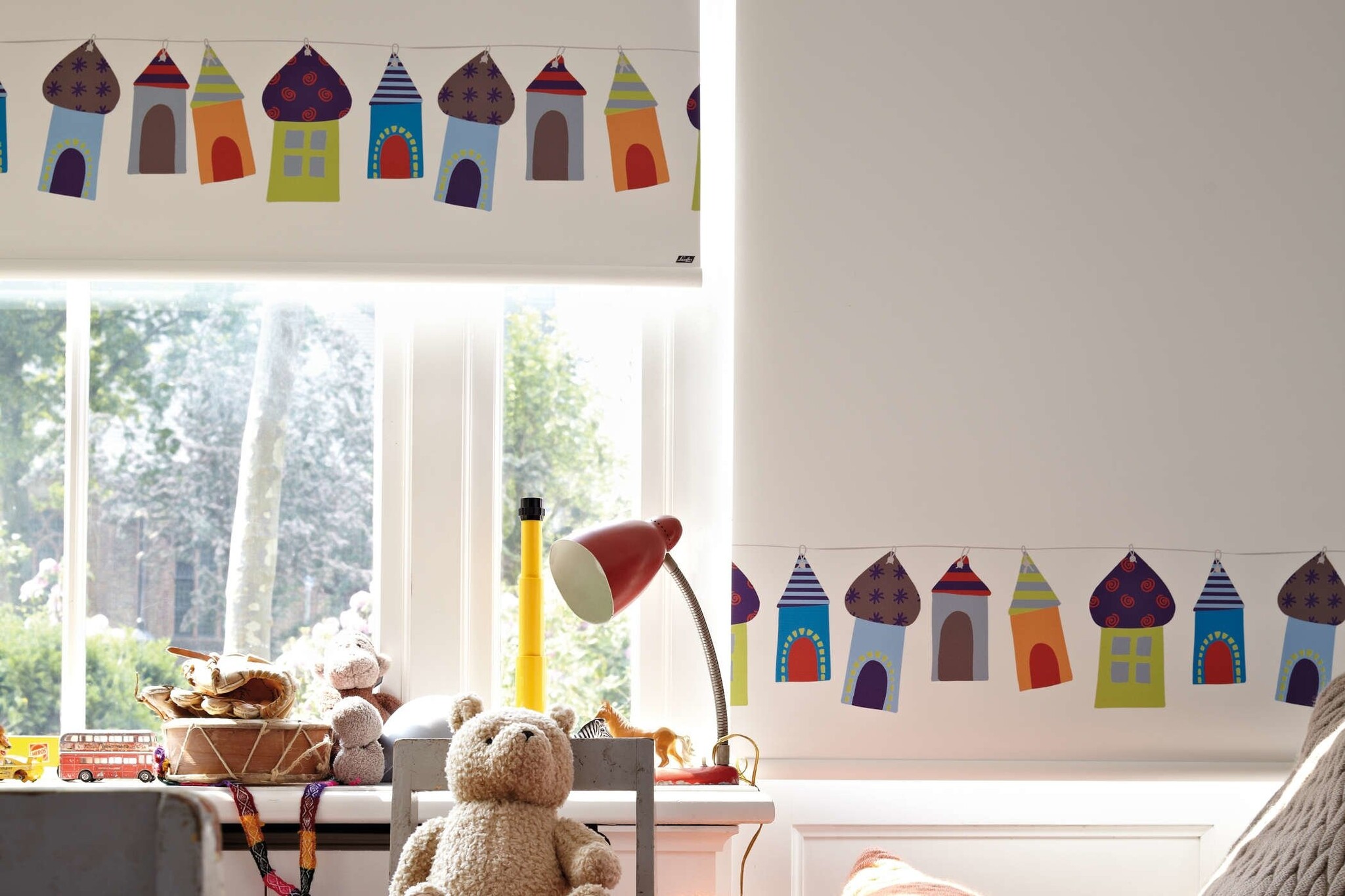 De Luxaflex Expressions Rolgordijnen hebben aantrekkelijke patronen met bijvoorbeeld fotoprints, romantische bloemen, moderne grafische beelden of vrolijke kinderdessins, ideaal voor in kinderdagverblijven of in de kinderhoek in een hotel.