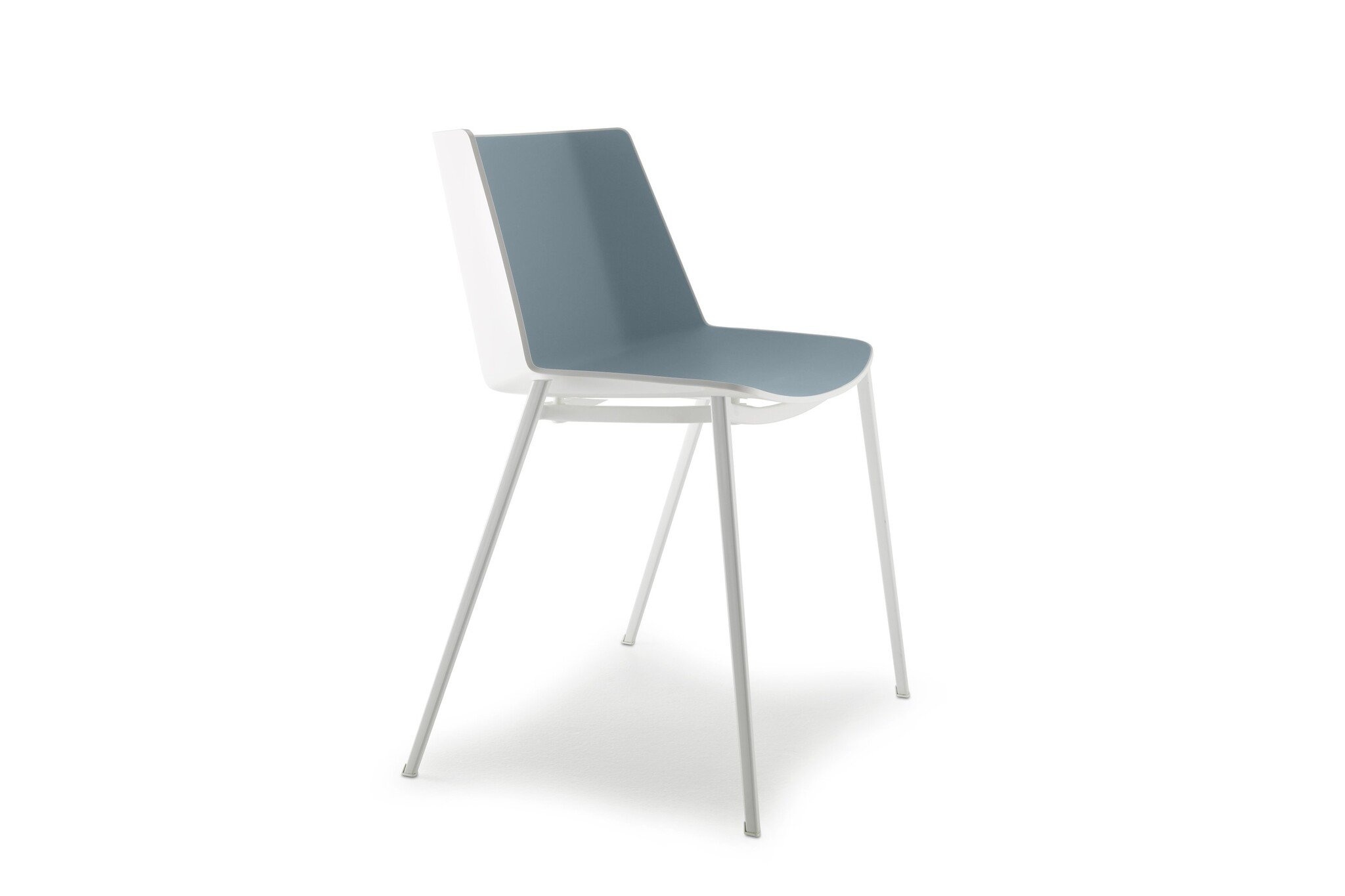 De MDF Italia Aiku stoelen met metalen onderstel en zonder armleggers zijn stapelbaar.